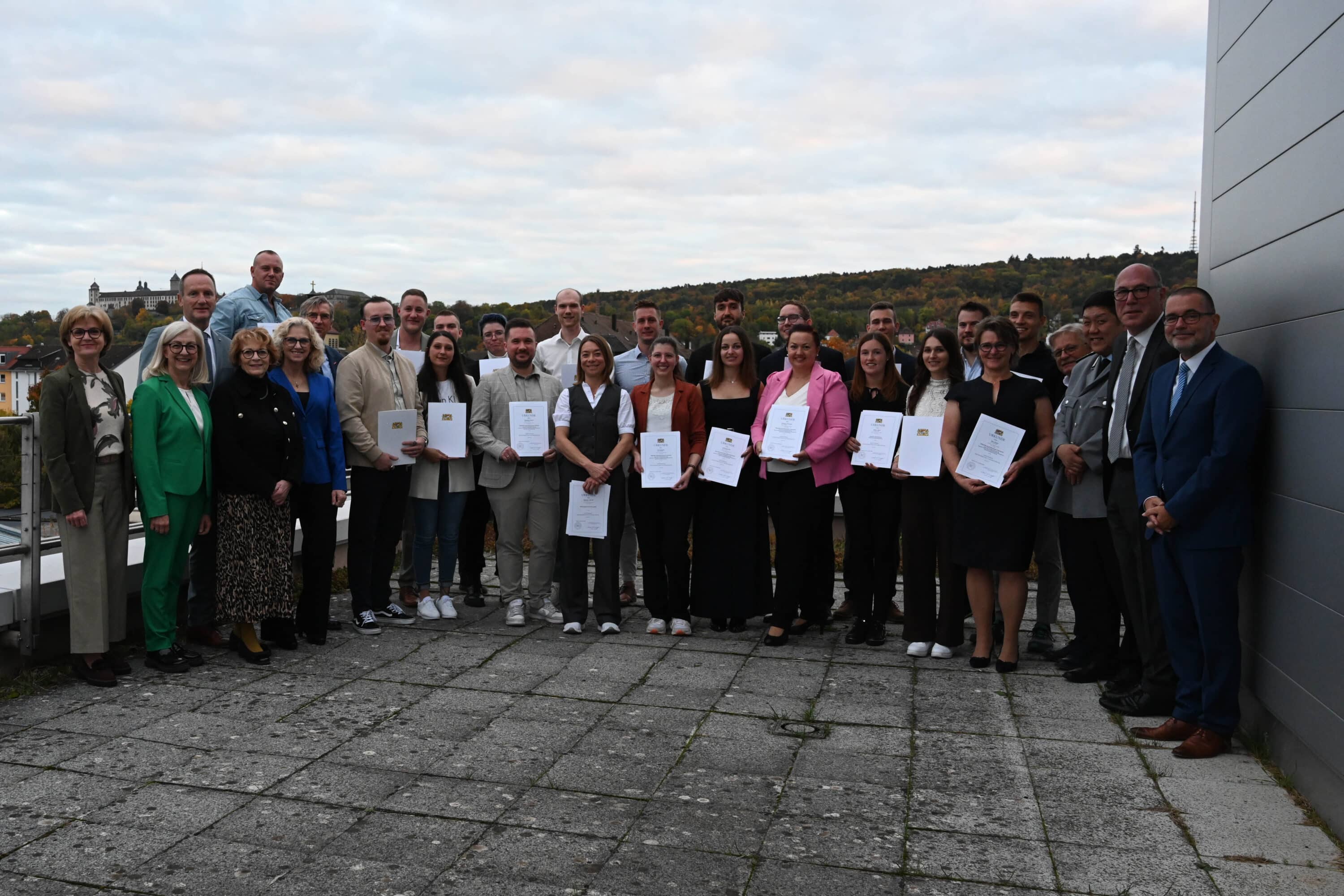 Würzburg: Insgesamt 117 Absolventinnen und Absolventen verschiedener Aufstiegsfortbildungen überreichte die Akademie für Unternehmensführung der Handwerkskammer für Unterfranken am Donnerstag, 16. Oktober 2025, ihre Diplome. Sie hatten sich in den letzten Monaten im betriebswirtschaftlichen und im IT-Bereich weitergebildet und damit einen wichtigen Schritt in ihrer beruflichen Karriere gemacht. Bei der Abschlussfeier in Würzburg erhielten 29 der Absolventen zudem aufgrund sehr guter Prüfungsergebnisse den Meisterpreis der Bayerischen Staatsregierung.