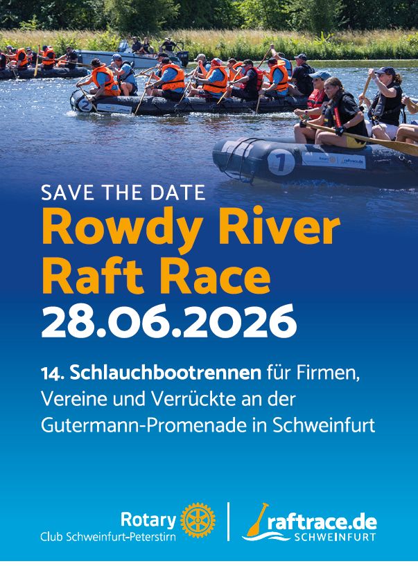 Wieder mit dabei sind Teams mit klangvollen Namen wie Primaster Paddler, MHV Doppel FIGGO, Paddel Schweine, Friedrich´s Flussflitzer, Hauptzollamt Schweinfurt, Riedel Rafting Queens, Riedel Red Devils, MS Frieden, Bocksbeutel Allstars, Glöckle Superhelden, n’uboot. Ein Team besteht aus 9 bis 12 Paddlern und Paddlerinnen und kann jederzeit über die Homepage www.RaftRace.de angemeldet werden. Natürlich gibt es auch 2026 wieder den Sonderpreis für den originellsten Mannschaftsauftritt.