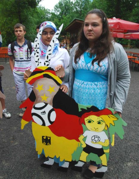 „Eure Ideen finde ich hervorragend“, lobte Schweinfurts Oberbürgermeister Sebastian Remelé und outete sich als Fan von verschiedenen Fahnen, der früher selbst mal ein Buch damit anlegte. Der OB, der die ersten beiden Grundschuljahre an der Albert-Schweitzer-Volksschule am Bergl verbrachte, betonte die Notwendigkeit des Engagements aus der Bürgerschaft für den Wildpark, der nach wie vor keinen Eintritt kostet. „Weine nicht, kleine Wallis“, heißt es dort seit vielen Monaten, weil die Wallisziegen ja ein neues Gehege bekommen, das am 25. Juli mit einem „Lachenden Wallis-Fest“ eingeweiht wird. „Juble, kleine Wallis“, forderte Remelé für Sonntag angesichts des ersten Auftritts der Nationalmannschaft Deutschlands. Wobei die Ziegen ja an sich eher Fans der Schweizer sein dürften…