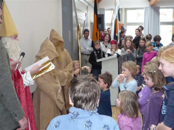 Der Nikolaus hatte bei den zahlreichen Kindern viel zu loben und auch ein bisschen zu tadeln und die – Gott sei Dank zu zweit angerückten – Knechte des heiligen Mannes mussten 40 Päckchen unter den anwesenden „kleinen Kolpingmitgliedern“ verteilen.