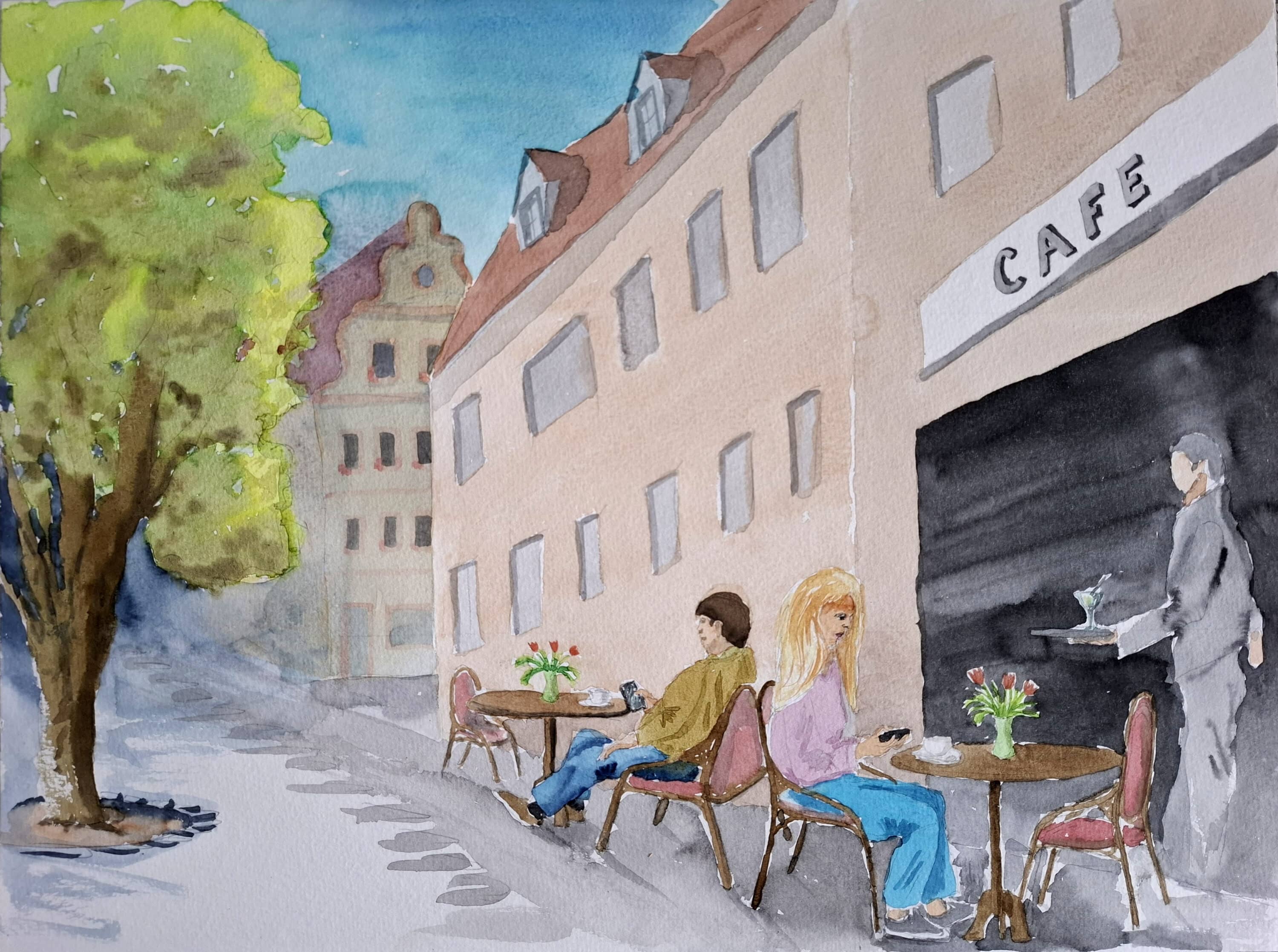 Neben den großformatigen Aquarellen zeigt Weisenberger auch kleinformatige Porträts und spontane Alltagsskizzen. Sie entstehen oft unterwegs – in der Bahn, im Café oder auf dem Marktplatz – und fangen jene flüchtigen Begegnungen ein, die das urbane Leben prägen. So entsteht ein vielschichtiges Bild menschlicher Nähe, Vergänglichkeit und Beobachtung – und ein ganz persönlicher Blick auf das, was uns im Alltag verbindet.