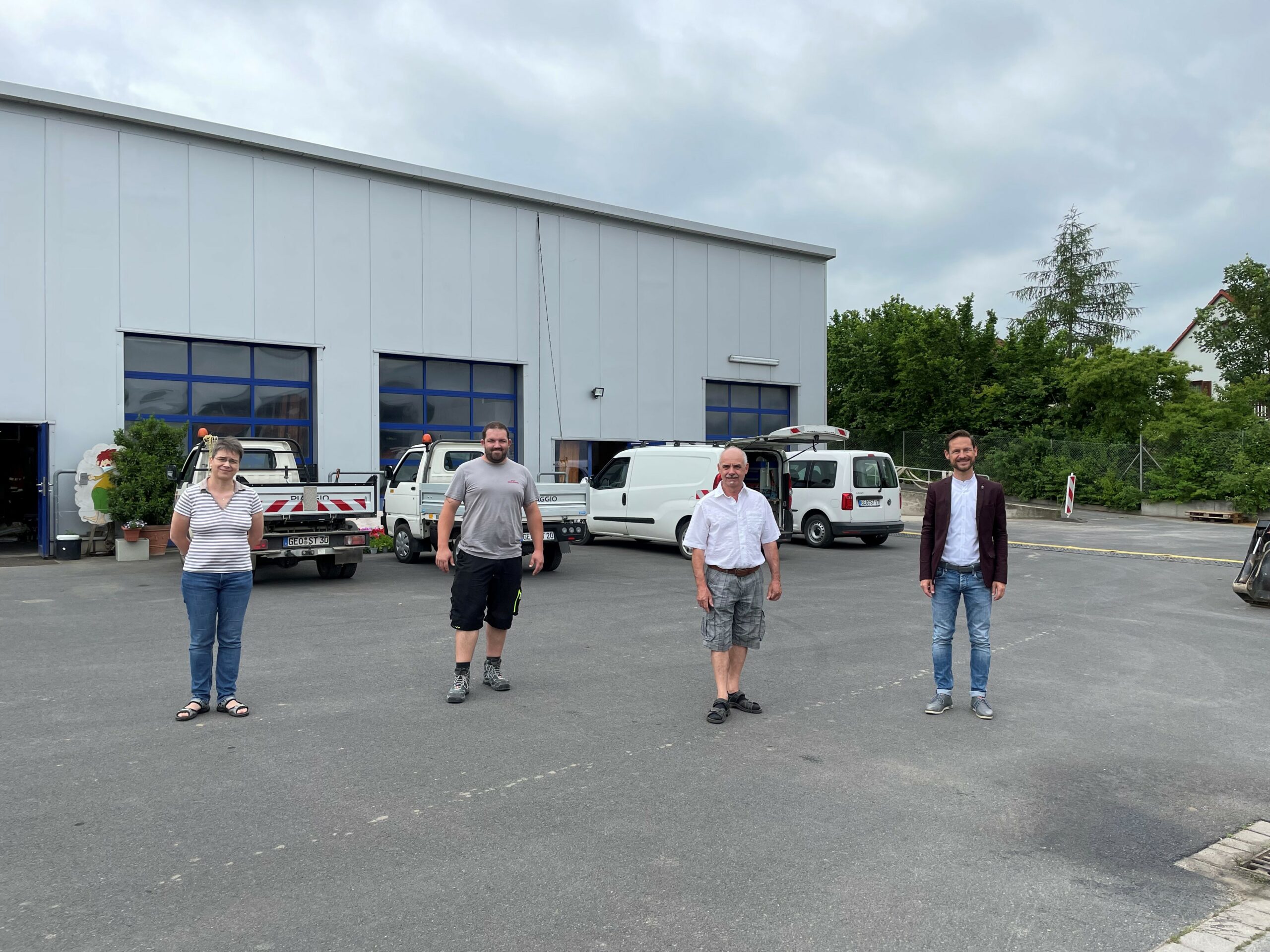Im Bild v.l.: Stadtbaumeisterin Maria Hoffmann, Michael Finster (neuer Bauhofleiter), Norbert Hackenberg (ehemaliger Bauhofleiter) und Bürgermeister Thorsten Wozniak. Foto: Sandra Nagel, Stadtbauamt