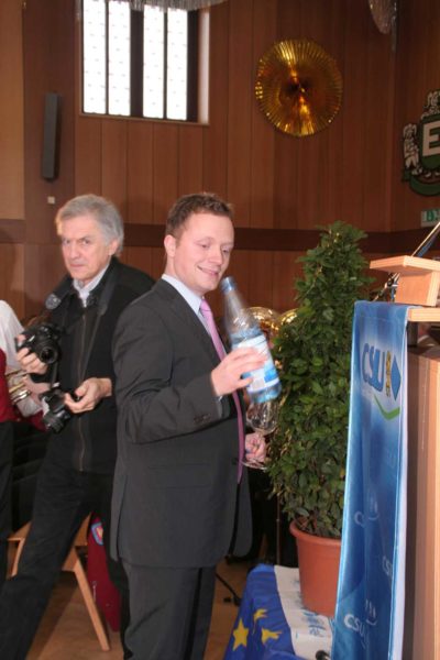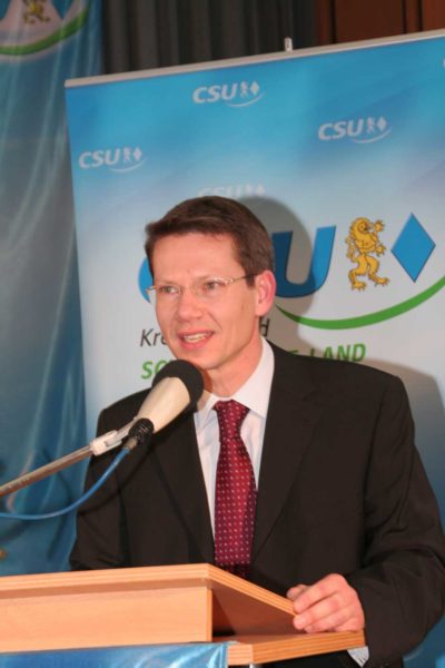 Gerhard Eck, seit Oktober Staatsekretär im Innenministerium, zeigte seinen Stolz auf seine Partei in Zahlen. „Wer schafft es schon, an einem Sonntagnachmittag 300 bis 400 Menschen in einen Saal zu bringen?“, fragte er und erklärte anhand der Arbeitslosenzahlen, dass in Bayern „gute politische Arbeit gemacht wird“.