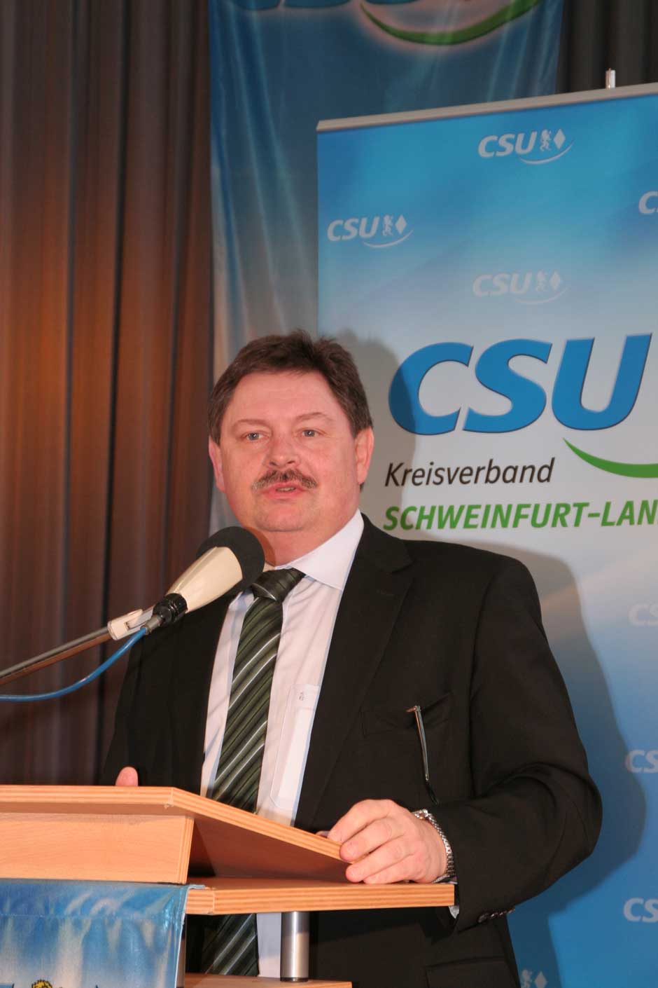 Gerhard Eck, seit Oktober Staatsekretär im Innenministerium, zeigte seinen Stolz auf seine Partei in Zahlen. „Wer schafft es schon, an einem Sonntagnachmittag 300 bis 400 Menschen in einen Saal zu bringen?“, fragte er und erklärte anhand der Arbeitslosenzahlen, dass in Bayern „gute politische Arbeit gemacht wird“.