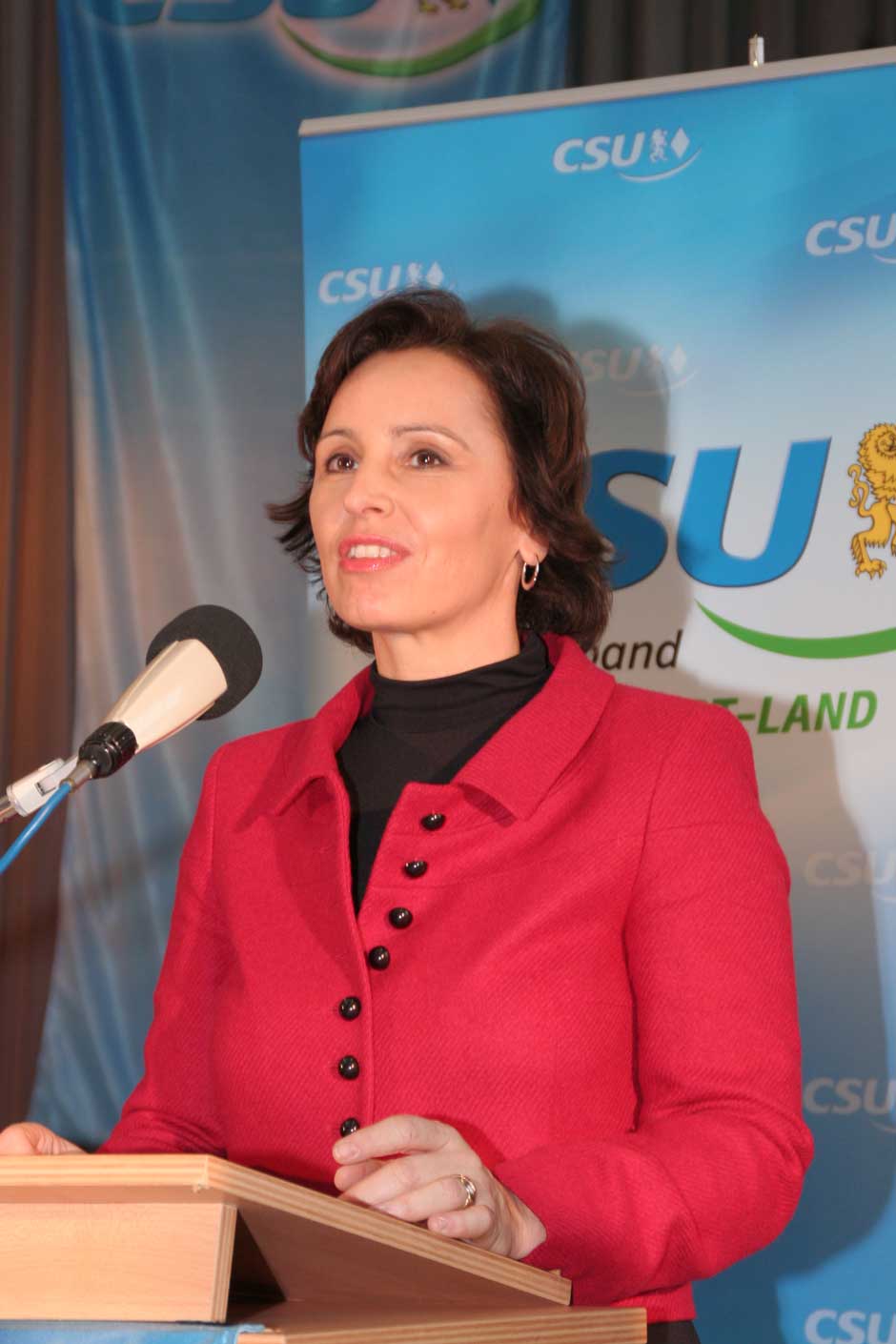 Die bayerische Staatsministerin für Arbeit, Sozialordnung, Familie und Frauen, Christine Haderthauer, übernahm die Festrede. Im Hinblick auf das Debakel bei der Landesbank mahnte sie, nicht zurück, sondern nach vorne zu blicken. Sie glaubt: „In Wahrheit sind Menschen doch nicht an irgendwelchen Blutopfern interessiert“, vielmehr hätten die Bürger den Anspruch, „ dass wir Ihnen erklären, wie so etwas passieren konnte und wie man dies in Zukunft vermeiden kann“. Personelle Opfer zu fordern sei der einfachere Weg und verhindere oft inhaltliche Veränderungen.