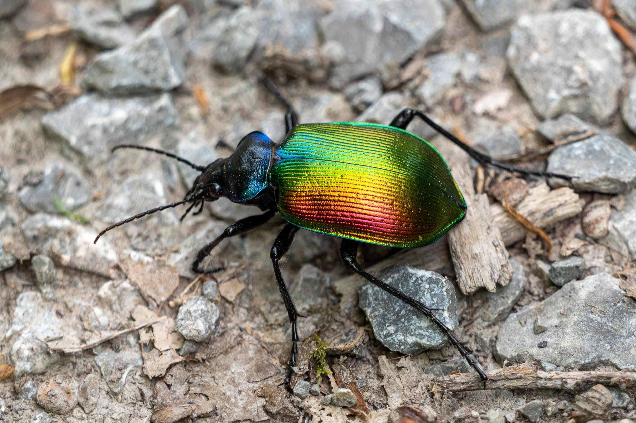 Großer Puppenräuber: durch seinen goldglänzend metallischen Panzer und das blaumetallische Halsschild fast unverwechselbar