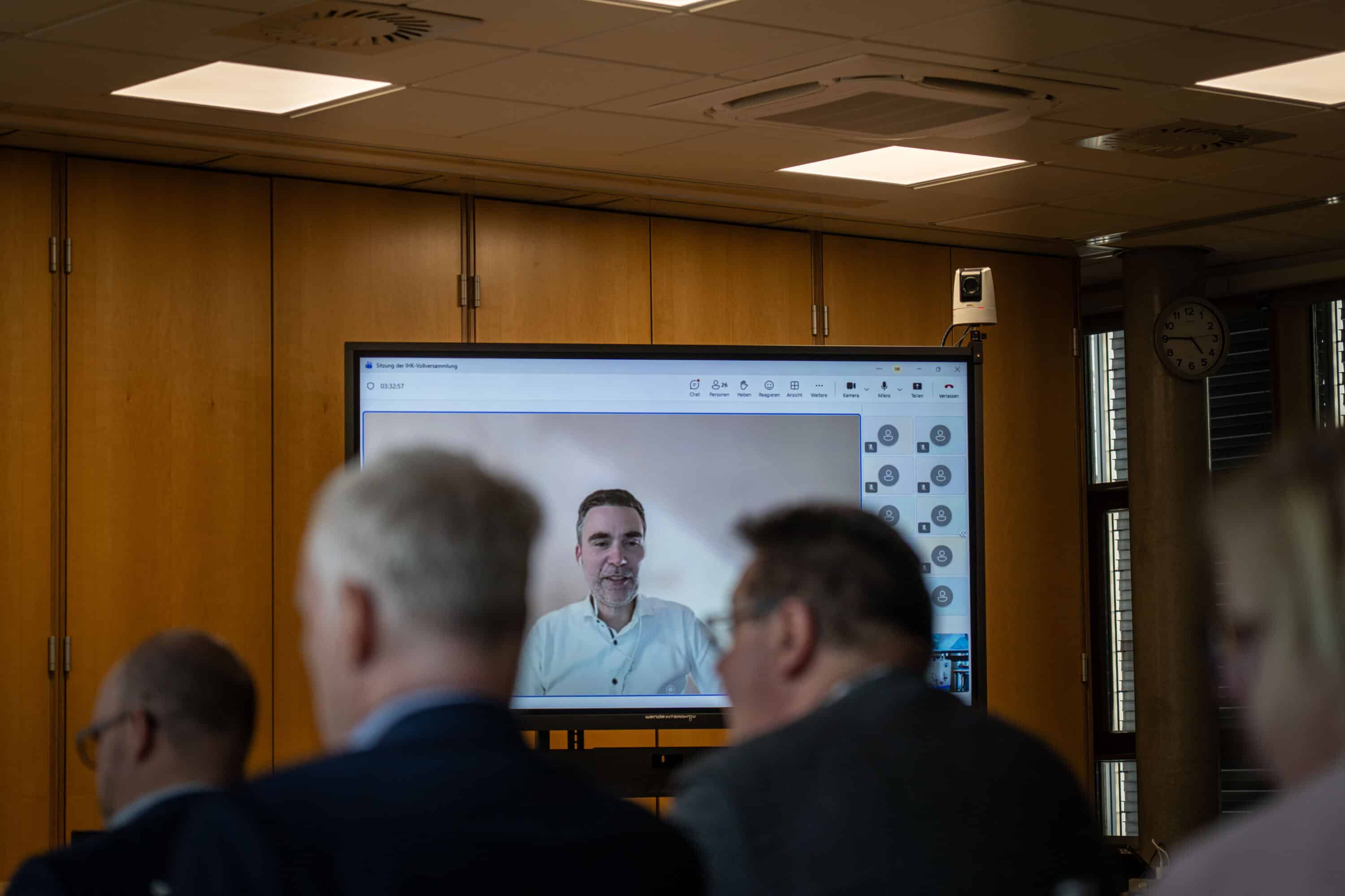 Anschließend informierte DIHK-Bereichsleiter Dr. Sebastian Bolay die Unternehmerinnen und Unternehmer über „Neue Wege in der Energiewende“. IHK-Präsidentin Caroline Trips betonte, dass Versorgungssicherheit nicht nur ein energie-, sondern auch ein sicherheitspolitisch relevantes Thema sei. „Die Energiewende steht an einem entscheidenden Punkt. Klimaziele, Versorgungssicherheit und Wirtschaftlichkeit verlangen neue Antworten.“ Bolay nahm den Ball auf: „Der aktuelle Weg zur Klimaneutralität setzt auf staatliche Detailsteuerung und führt dadurch zu unnötig hohen Kosten für die Wirtschaft.“ Die DIHK plädiere deshalb für einen anderen Ansatz: Die Unternehmen sollten selbst entscheiden können, wie sie klimaneutral werden. „So entstehen Innovationen und die besten Lösungen setzen sich durch“, so der DIHK-Energieexperte.