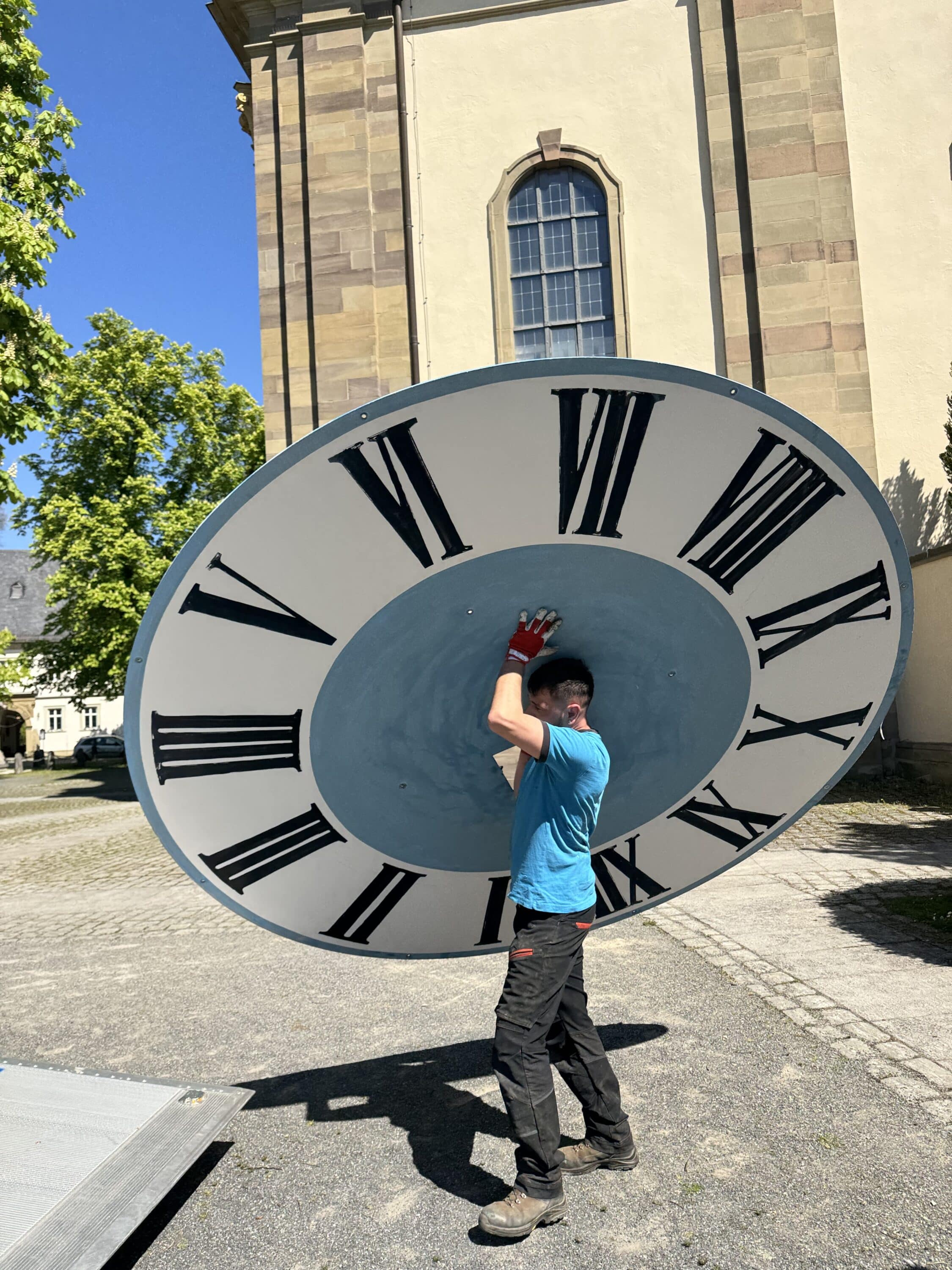 Nach Abschluss der Restaurierungsarbeiten werden die Zifferblätter wieder montiert und sollen dann für viele weitere Jahre zuverlässig die Zeit anzeigen – und zugleich als prägendes, weithin sichtbares Wahrzeichen der Gemeinde Grafenrheinfeld dienen.