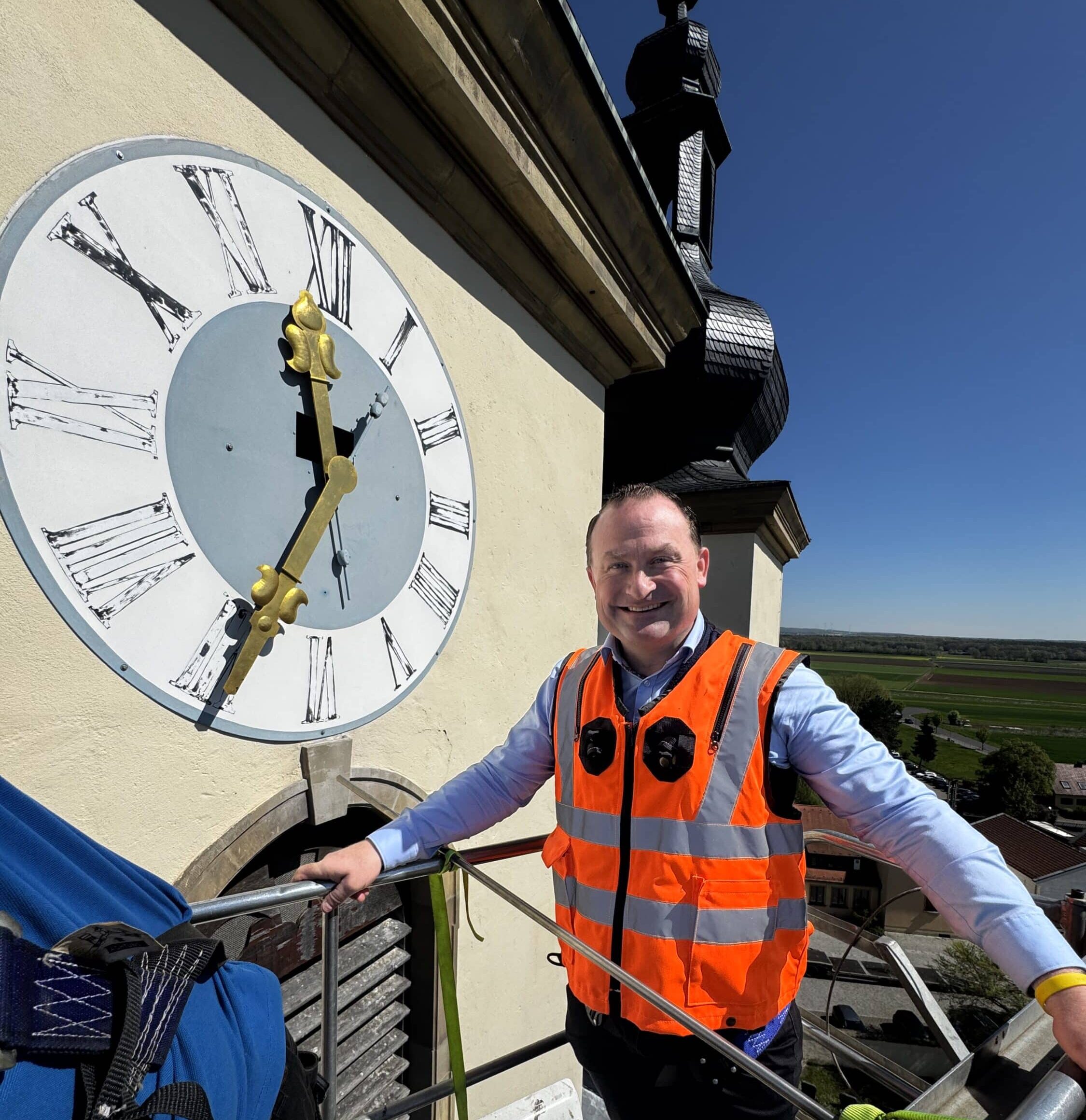 „Im Laufe der Jahrzehnte haben insbesondere Witterungseinflüsse und intensive Sonneneinstrahlung – vor allem auf der Süd- und Westseite – deutliche Spuren an den Zifferblättern hinterlassen. Um diese bedeutenden Elemente unseres Ortsbildes langfristig zu erhalten, wurde die Restaurierung in Auftrag gegeben.“, so ist der Bürgermeister Christian Keller.