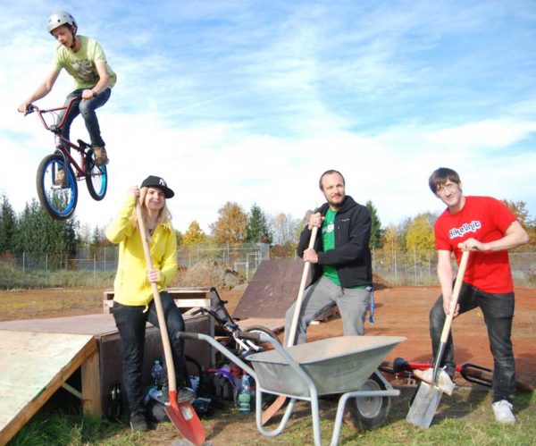 Auf fünf Jahre hat der Verein das Gelände für wenig mehr als 1000 Euro im Jahr gepachtet. „Wir möchten von hier nicht mehr weggehen“, sagt Dominik Vogt ebenso deutlich. Das Gelände sei einfach ideal. Dem Vorsitzenden schweben einige Dinge vor: Kooperationen mit dem Wildpark oder der Artistikschule Firlefanz, gemeinsame Sommerfeste eventuell, vielleicht ein Downhill-Rennen im Stadtwald. Generell will er „alle Zweiradfahrer unter einen Hut kriegen“, Schaltzentrale sein auch für Ausflüge oder organisierte Fahrten. Nicht nur der Dirtpark alleine soll die Zukunft der Bike Unit darstellen, die Gegenwart aber fordert dort den vollen Einsatz. „Wir sind gerade wie Häuslebauer“, vergleicht es Dominik Vogt.