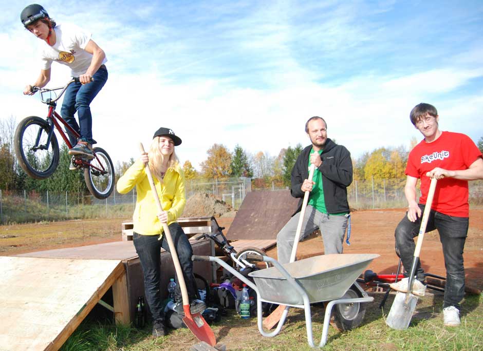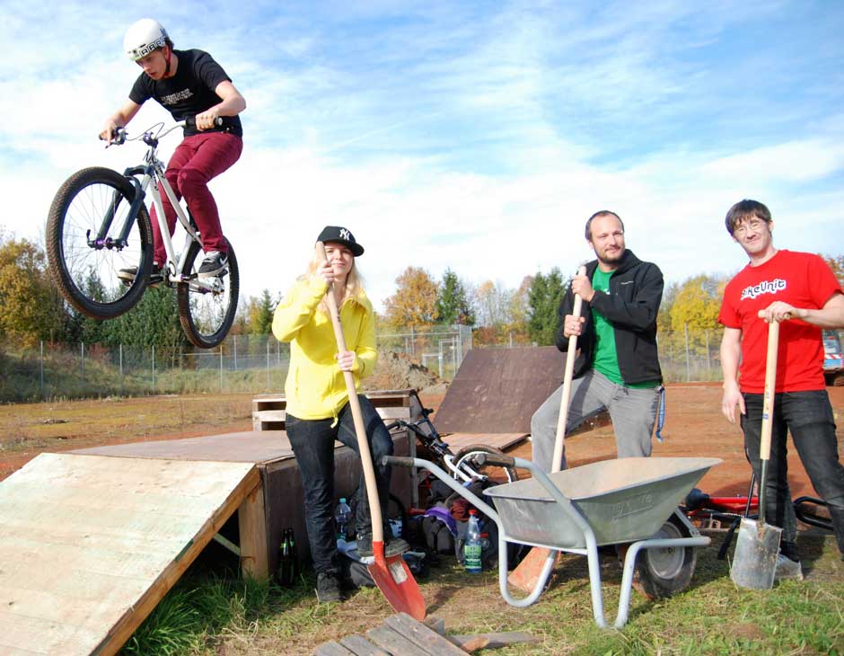 Auf fünf Jahre hat der Verein das Gelände für wenig mehr als 1000 Euro im Jahr gepachtet. „Wir möchten von hier nicht mehr weggehen“, sagt Dominik Vogt ebenso deutlich. Das Gelände sei einfach ideal. Dem Vorsitzenden schweben einige Dinge vor: Kooperationen mit dem Wildpark oder der Artistikschule Firlefanz, gemeinsame Sommerfeste eventuell, vielleicht ein Downhill-Rennen im Stadtwald. Generell will er „alle Zweiradfahrer unter einen Hut kriegen“, Schaltzentrale sein auch für Ausflüge oder organisierte Fahrten. Nicht nur der Dirtpark alleine soll die Zukunft der Bike Unit darstellen, die Gegenwart aber fordert dort den vollen Einsatz. „Wir sind gerade wie Häuslebauer“, vergleicht es Dominik Vogt.