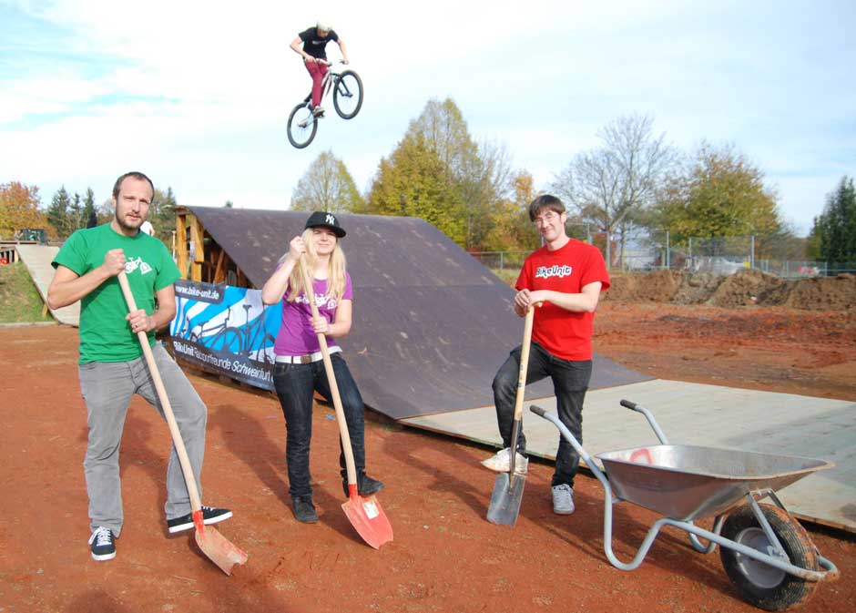 …der die Radsportler in der Region vereinen will und der es sich bei der Gründung zum Hauptziel gesetzt hat, in Schweinfurt einen Bike- bzw. Dirtpark zu errichten. Versuch eins neben Willy-Sachs- und Eisstadion scheiterte, weil die Stadt dort eine Umzäunung des Geländes nicht duldete. Nun aber hat der Verein ein mit über 7000 Quadratmetern viel größeres Areal am Sportpark Hundertäcker gepachtet, schüttet dort bereits fleißig Hügel auf und hat schon die erste Holzrampen aufgestellt. Die Fahrt kann beginnen, für Frühjahr 2011 ist die große Eröffnung angedacht.
