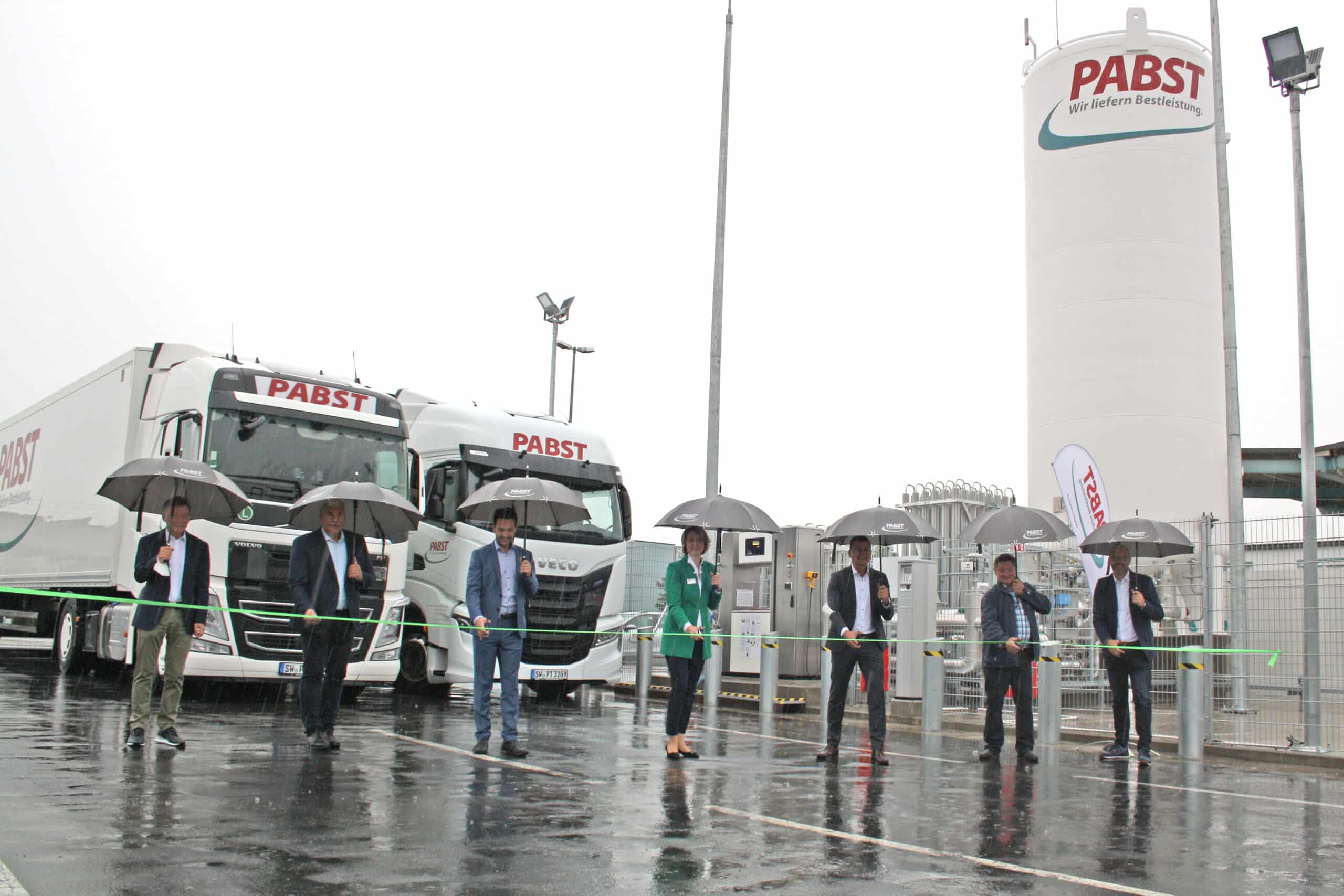 Anlass war die offizielle Eröffnung der betriebseigenen LNG-Tankstelle. LNG steht hierbei für Liquefied Natural Gas, also Erdgas. „Durch den Einsatz von gasbetriebenen LKW versprechen wir uns eine CO2 Reduzierung von ca. 20%“, erläutert Hans Pabst, der geschäftsführende Gesellschafter von Pabst Transport. Dies sei auch der Beweggrund für einen sukzessiven Umbau des Fuhrparks auf den umweltfreundlicheren und klimaschonenderen Kraftstoff, der nahezu keinen Feinstaub produziert. „Wir wollen unseren ökologischen Fußabdruck verbessern, im Sinne unserer unternehmerischen Verantwortung gegenüber der Gesellschaft“, so Hans Pabst weiter.