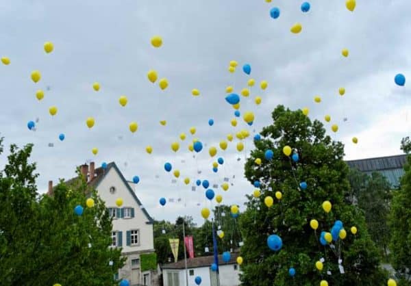 Schweinfurt: Anlässlich des bundesweiten Europa-Projekttags in dieser Woche fand am Celtis-Gymnasium u.a. eine Luftballonaktion der 5. Klassen statt. Die Schüler ließen vor dem Singen der Europahymne Luftballons in den Farben der Europaflagge in den Schweinfurter Himmel steigen und warten nun auf die Antwortschreiben der Finder…