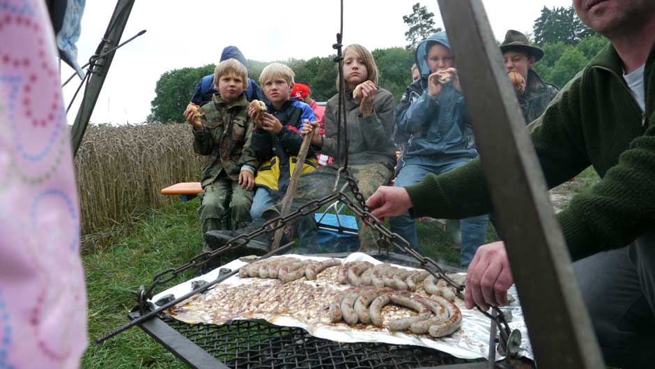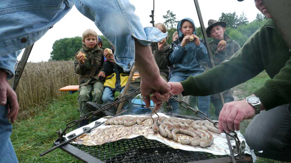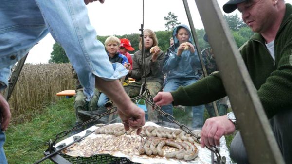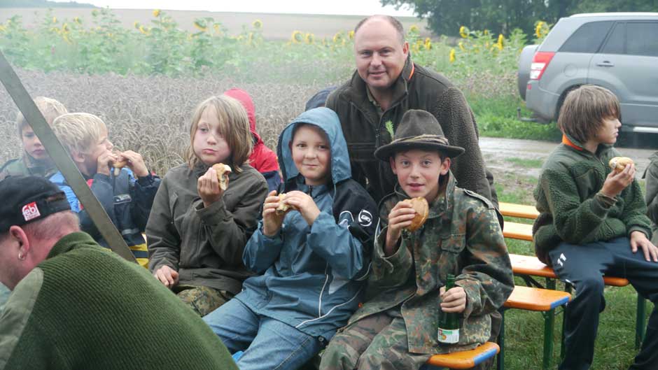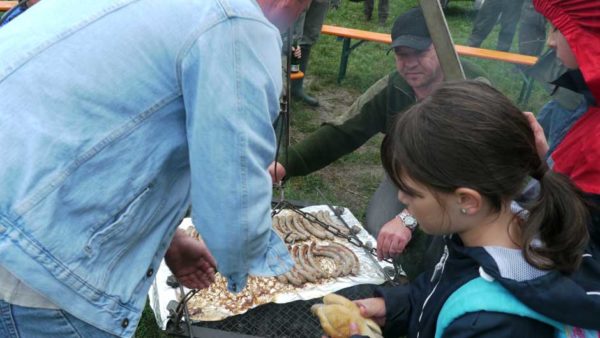 Als weitere Spaßaktion stand Maiskolben Zielwerfen auf dem Programm, was den Kindern trotz Regen sichtlich Spaß machte. Abrundung des Tages war im Anschluss die Verlosung von tollen Malbüchern, welche freundlicherweise vom BJV zur Verfügung gestellt wurden. Final fand noch das traditionelle Grillen am Lagerfeuer große Freude und Begeisterung. Mit Bratwurst und Getränken wurde die wunderschöne Veranstaltung abgeschlossen. Einen Herzlichen Dank gilt den Helfern und Gönnern die nicht auf den Foto sind. Eine Realisierung der aufwendigen Veranstaltung wäre ohne diese nicht möglich.