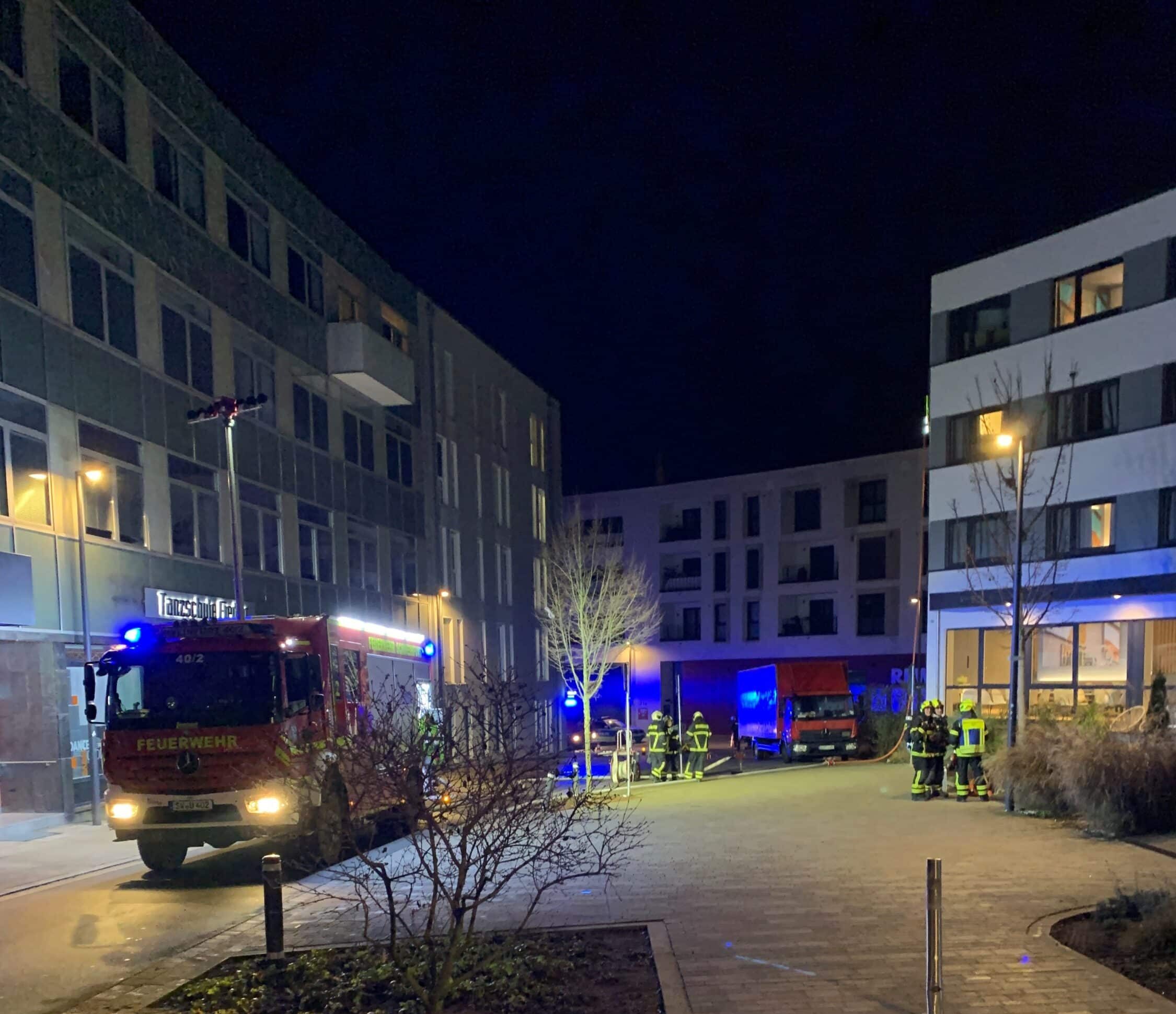Schweinfurt – Am Freitagabend, 16. Januar, kam es in einem Hotel in der Schweinfurter Hadergasse zu einem Zimmerbrand. Gegen 22:33 Uhr verständigte die automatische Brandmeldeanlage Einsatzkräfte der Ständigen Wache der Feuerwehr Schweinfurt. Bei deren Eintreffen konnte auf der Rückseite des Gebäudes bereits eine deutliche Rauchentwicklung aus einem Fenster wahrgenommen werden, woraufhin eine Alarmstufenerhöhung erfolgte. Unklar war zu diesem Zeitpunkt, ob sich im betroffenen Bereich noch Hotelgäste aufhielten. Eingesetzt waren mehrere Trupps der Feuerwehr Schweinfurt (Ständige Wache & Freiwillige Feuerwehr) sowie der Werkfeuerwehr SKF mit dem Auftrag Menschenrettung, Brandbekämpfung und Absuche, wodurch im weiteren Verlauf auch eine schlafend vorgefundene Person über die Drehleiter gerettet und durch den Rettungsdienst in ein Schweinfurter Krankenhaus transportiert werden musste. Die genannten Maßnahmen zeigten insgesamt schnellen Erfolg, sodass die Einsatzleitung gegen 23:15 Uhr „Feuer aus“ meldete.