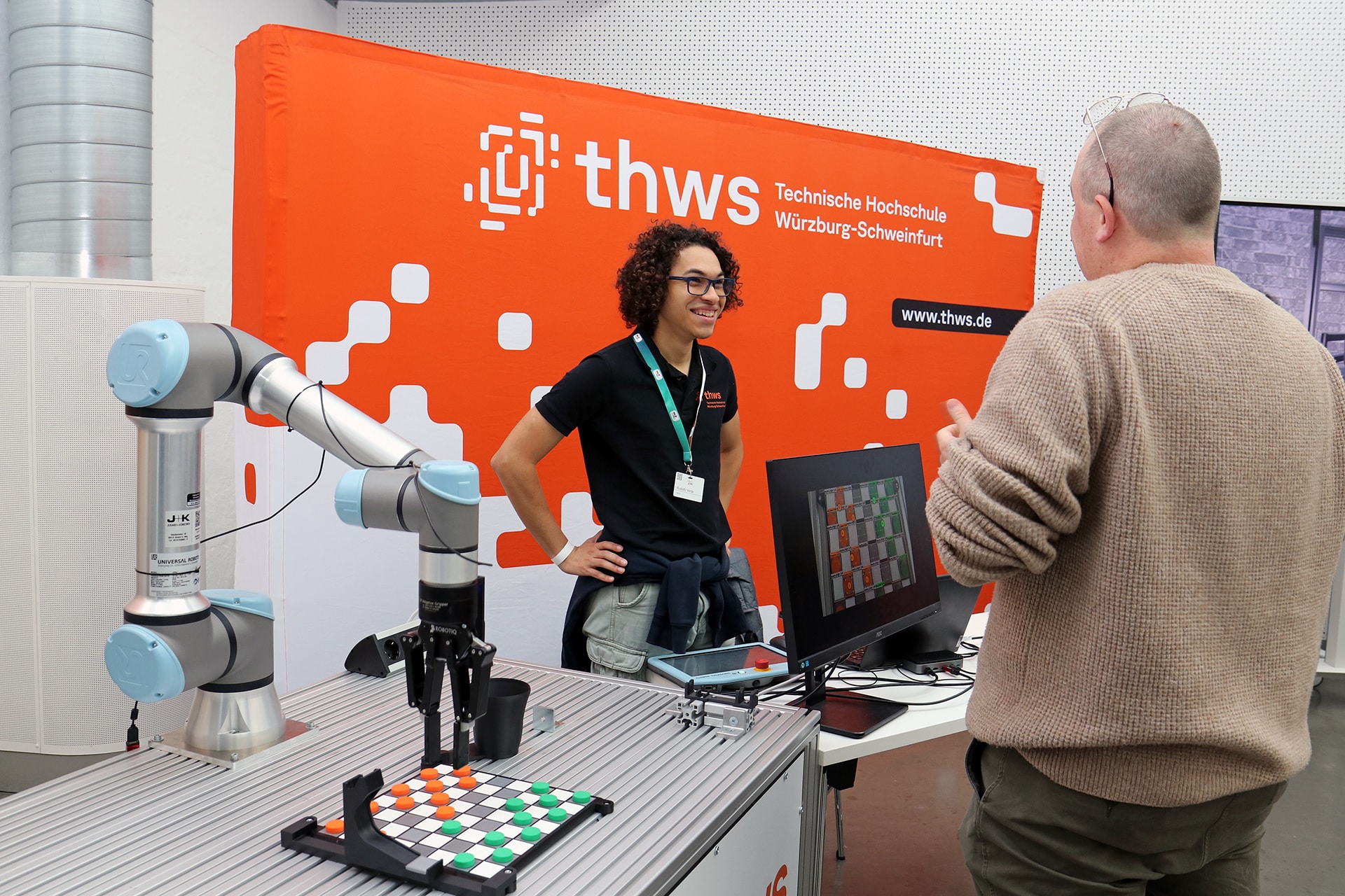 Titelbild: Kollaborative Roboter in Aktion erleben – der Infostand des Centers für Robotik (CERI) macht es möglich (Foto: THWS/Eva Kaupp)