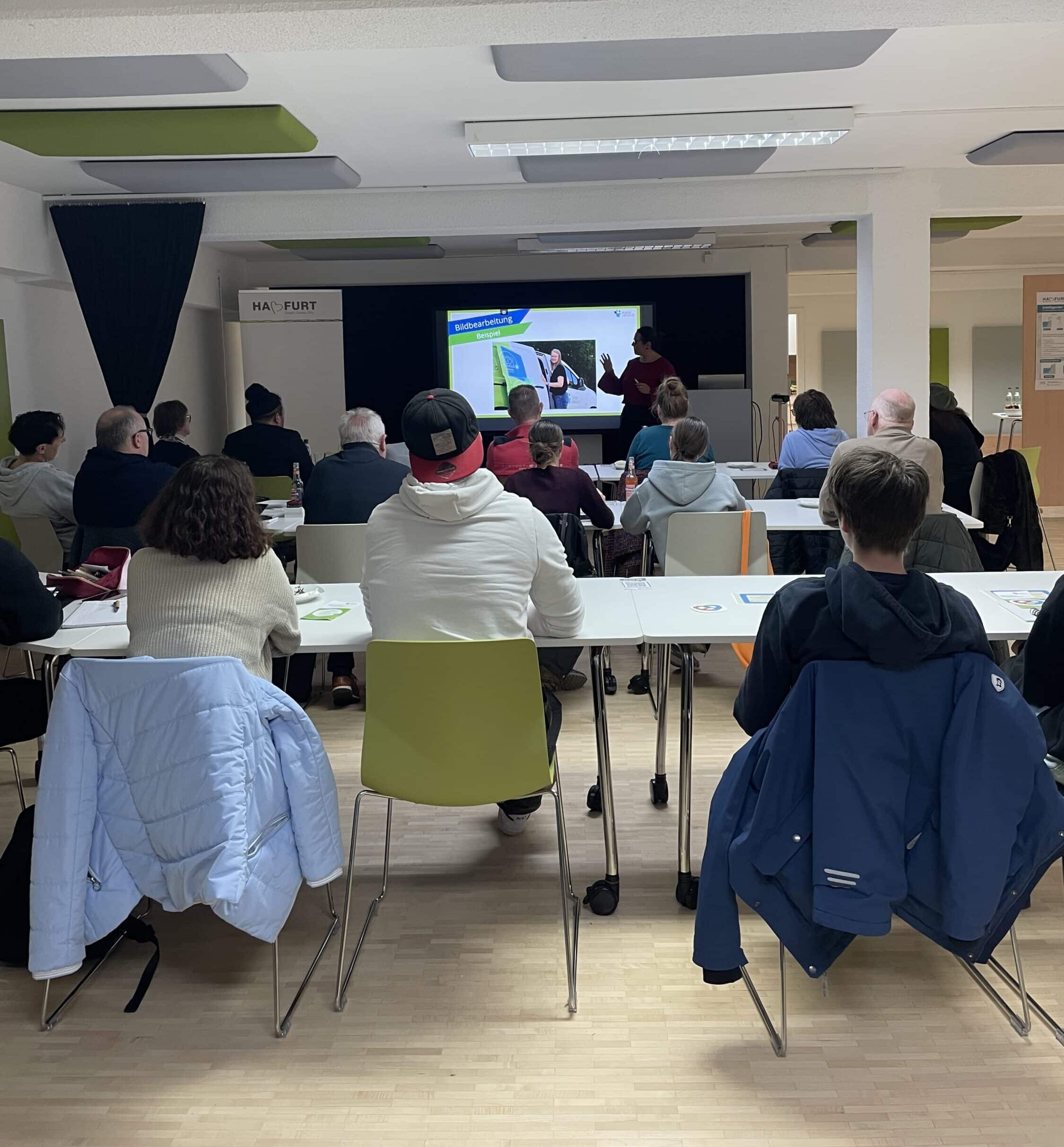 Haßfurt: Am Donnerstag, den 19. März 2026, veranstaltete die Freiwilligenagentur Mehrgenerationenhaus Haßfurt (MGH) im Stadtlabor Haßfurt den Workshop „Fotos verwenden: Bildbearbeitung, Stockfotos und Lizenzen“. Eingeladen waren Ehrenamtliche und interessierte Bürger*innen. Rund 20 Teilnehmende aus dem Landkreis Haßberge – von Haßfurt bis Untermerzbach nutzen die Gelegenheit, sich in dem dreistündigen Workshop intensiv mit dem Umgang von Bildmaterial im Vereinskontext auseinanderzusetzen.