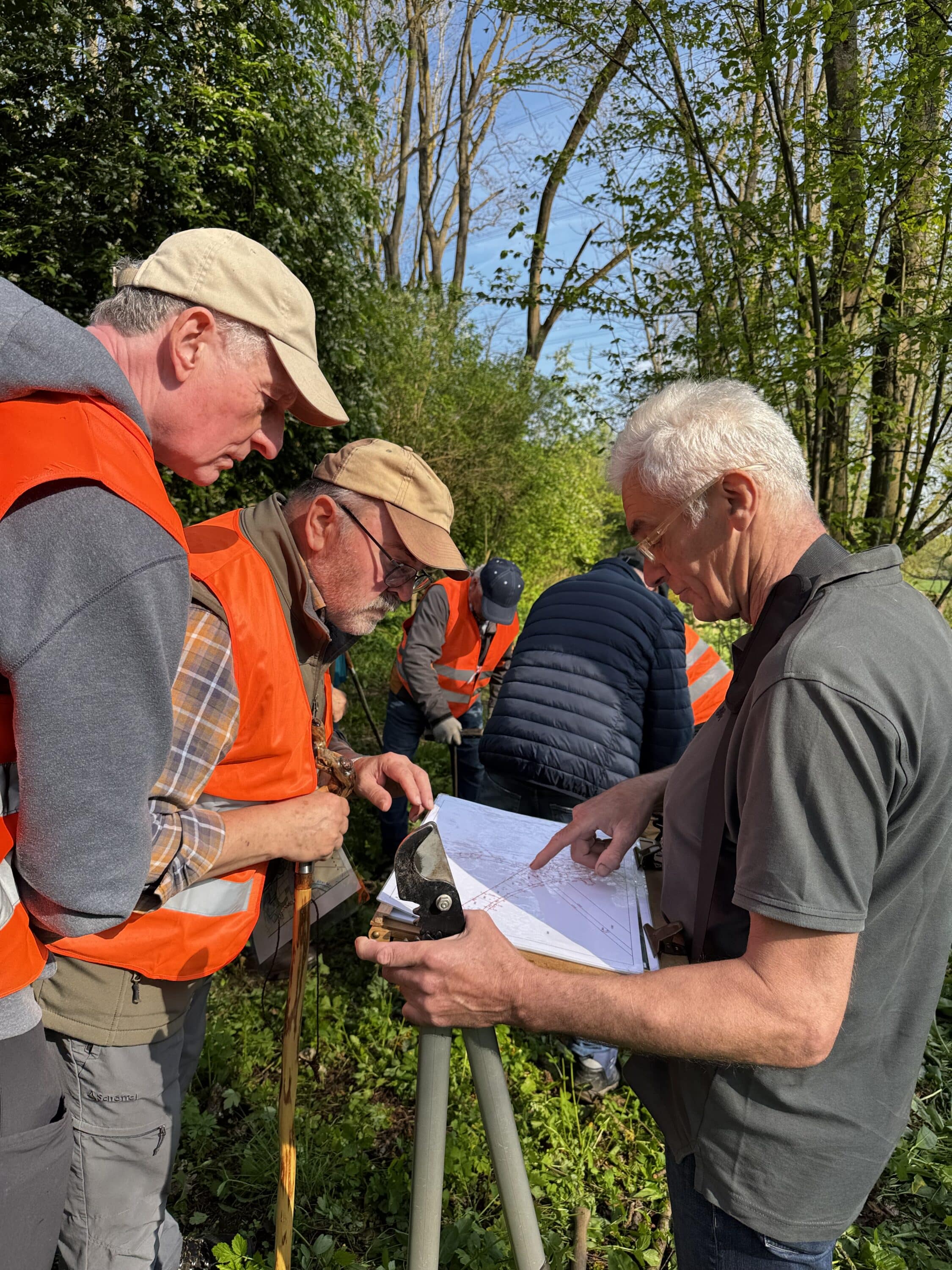 In diesem Jahr sind die Siebener aus Grafenrheinfeld gemeinsam mit den Feldgeschworenen aus Garstadt die gemeinsame Grenze abgelaufen. Zusammen suchen, prüfen und kontrollieren sie die historischen Grenzsteine, die oft seit vielen Jahrzehnten – manche sogar seit Jahrhunderten – ihren Platz markieren.