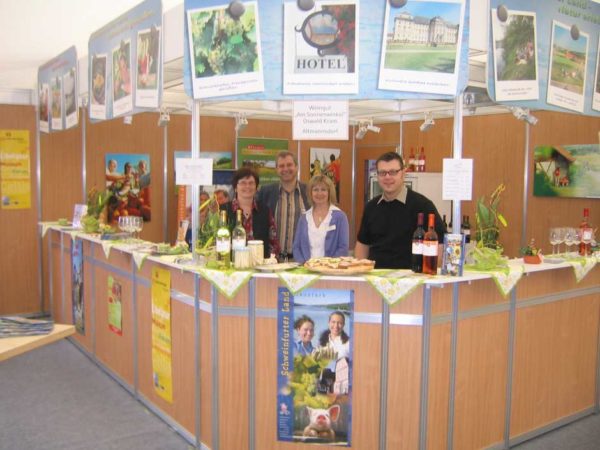 Der Stand wurde von viel Prominenz besucht: Landrat Harald Leitherer und die Gerolzhöfer Weinprinzessin Christine Dittmeier (Christine I.) begrüßten bei der Messe-Eröffnung u.a. Landtagspräsidentin Barbara Stamm, Abgeordnete, Regensburgs Oberbürgermeister und viele Pressefotografen.