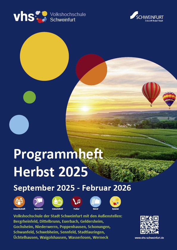 Schweinfurt – Die Einschreibung für das Herbstsemester der Volkshochschule Schweinfurt startet ab dem 15. September in der Stadt und in allen Außenstellen mit Ausnahme von Schonungen (17. September) und Werneck (18. September). Anmeldungen werden im vhs-Sekretariat in der Schultesstraße 19b, im Rathaus der Stadt Schweinfurt (Bürgerservice) sowie in den 16 Außenstellen im Landkreis Schweinfurt entgegengenommen.