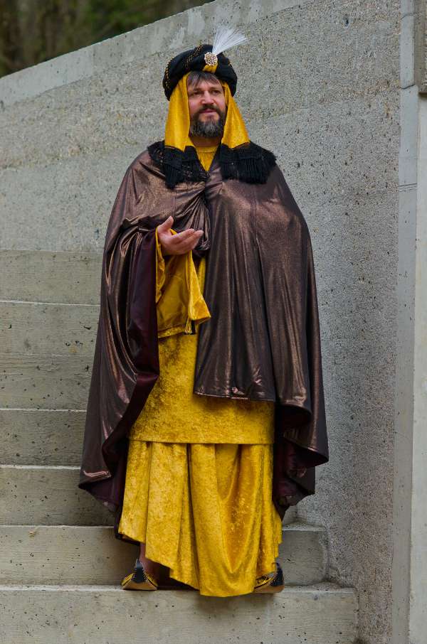 Seit 1973, da war er drei Jahre alt, hat er immer mitgespielt. Anfangs ist er von Mutter getragen worden, bei Volksszenen beim Einzug in Jerusalem, viele Leute auf der Bühne. Als kleiner Knirps auf den Armen seiner Mutter hatte der kleine Thomas schon große Freude am Spiel.