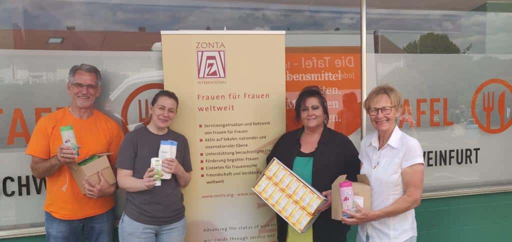 Schweinfurt: Hygieneartikel im Wert von 1000 Euro spendete der Zonta Club Bad Kissingen-Schweinfurt der Tafel Schweinfurt e.V. speziell für alleinstehende Frauen mit Tafel-Bezugsschein. Groß war die Freude der Tafel-Verantwortlichen über diese Spende: ErnstGehling, Vorsitzender der Tafel Schweinfurt e.V., nahm „die wirklich großzügige Spende“ in Empfang und dankte dem Zonta Club Bad Kissingen-Schweinfurt sehr herzlich.