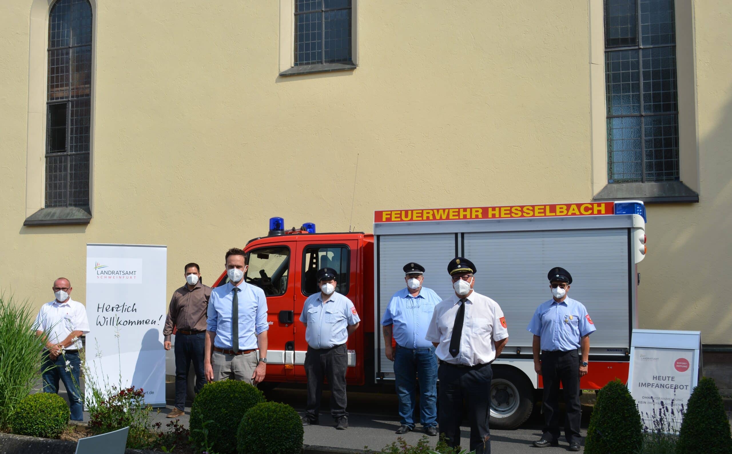 Am Montag, 19. Juli 2021, legte der Impfbus einen Stopp am Rathaus Hesselbach ein. Johannes Grebner, Erster Bürgermeister der Gemeinde Üchtelhausen; Kreisbrandrat Holger Strunk; Landrat Florian Töpper sowie Kräfte der Feuerwehr Hesselbach waren vor Ort, um weiterhin auf die Bedeutung der Corona-Schutzimpfung aufmerksam zu machen.
