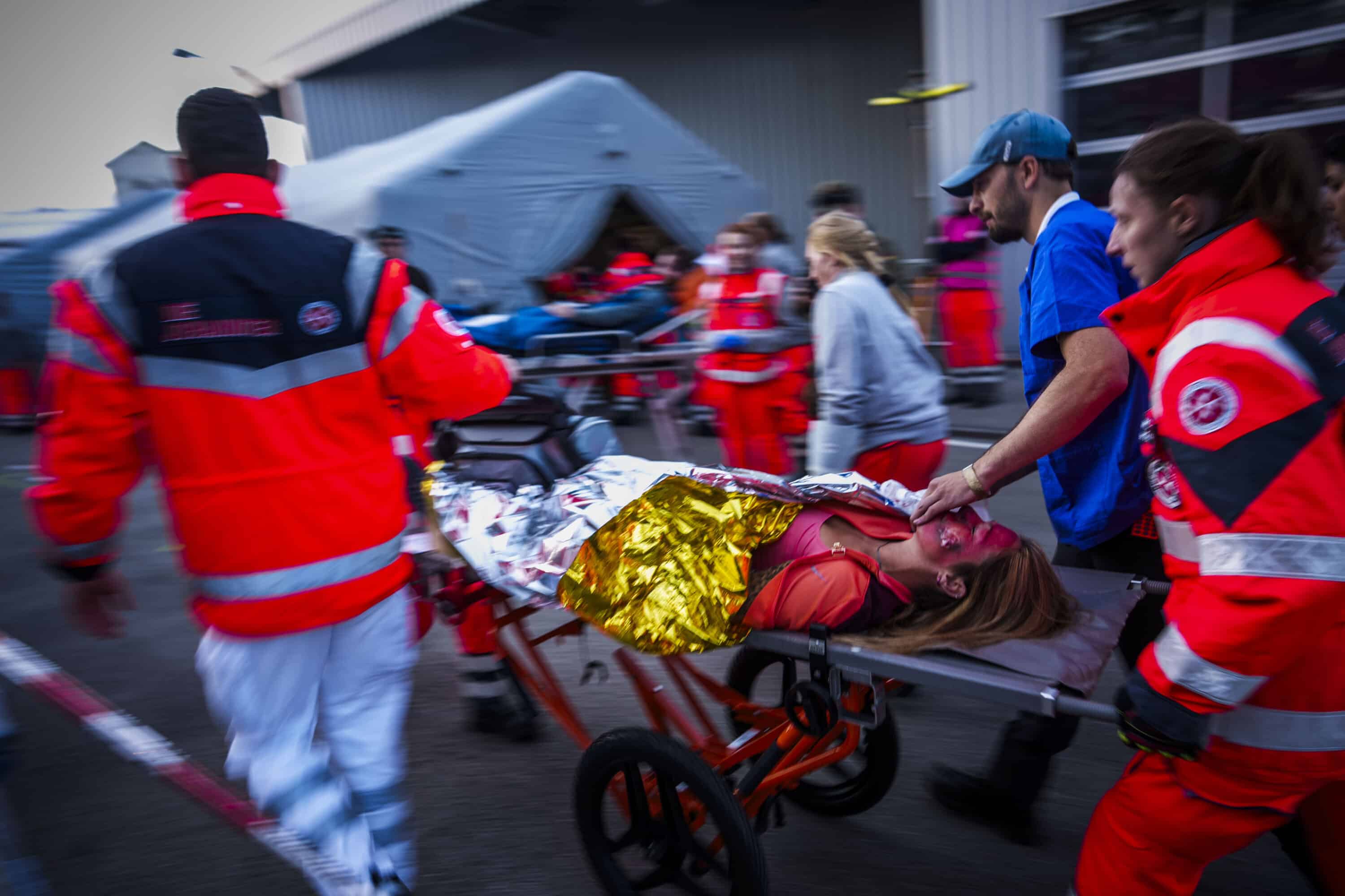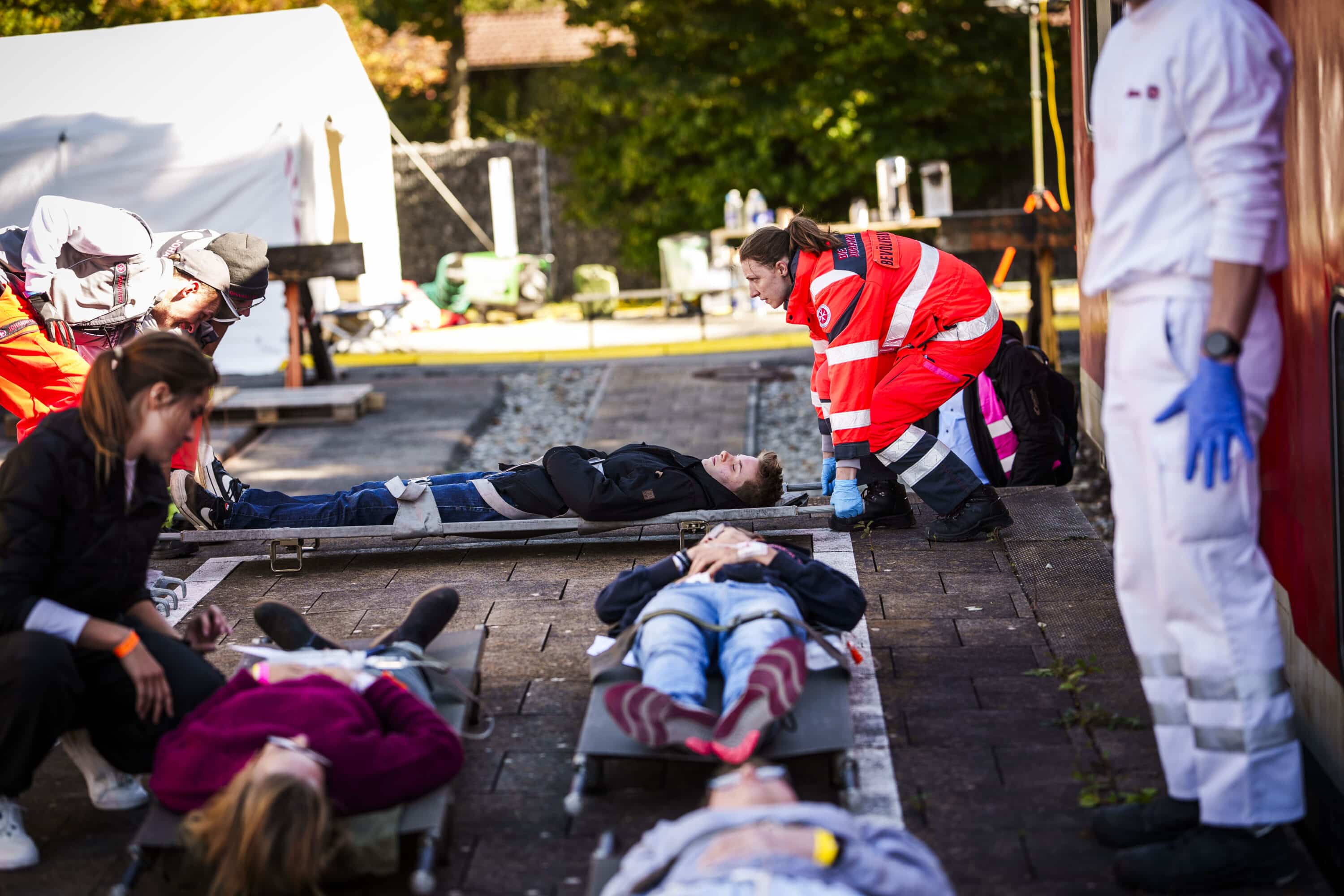 Titelbild: Betreuung und Versorgung der verletzten Personen bei der Landesübung im Bevölkerungsschutz der Johanniter in Bayern