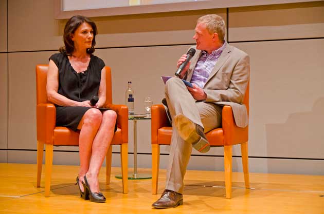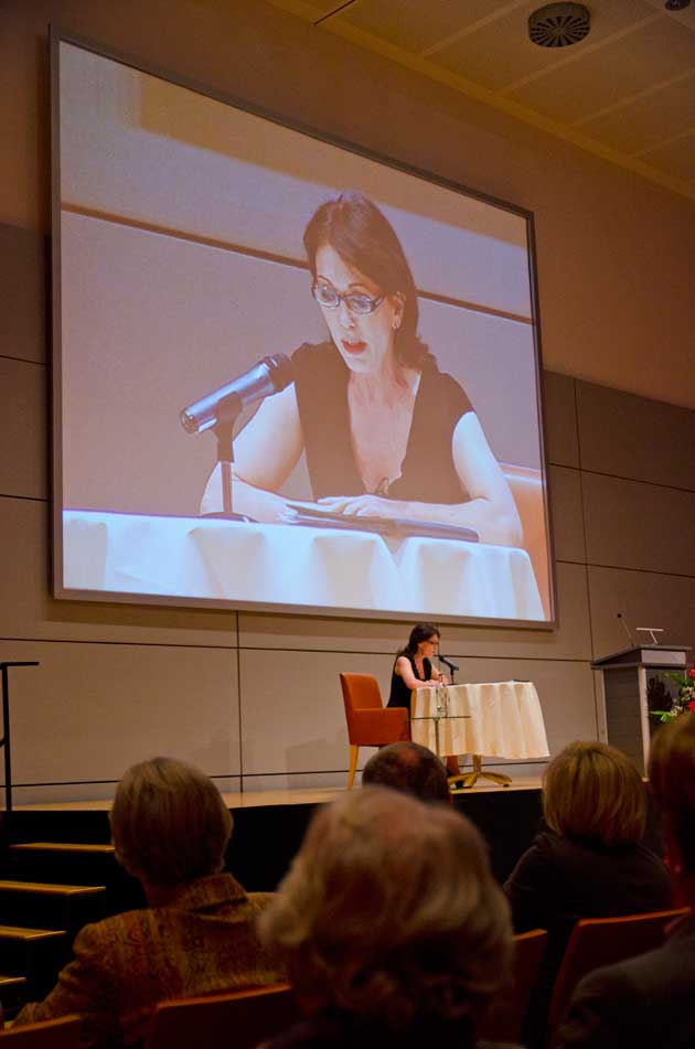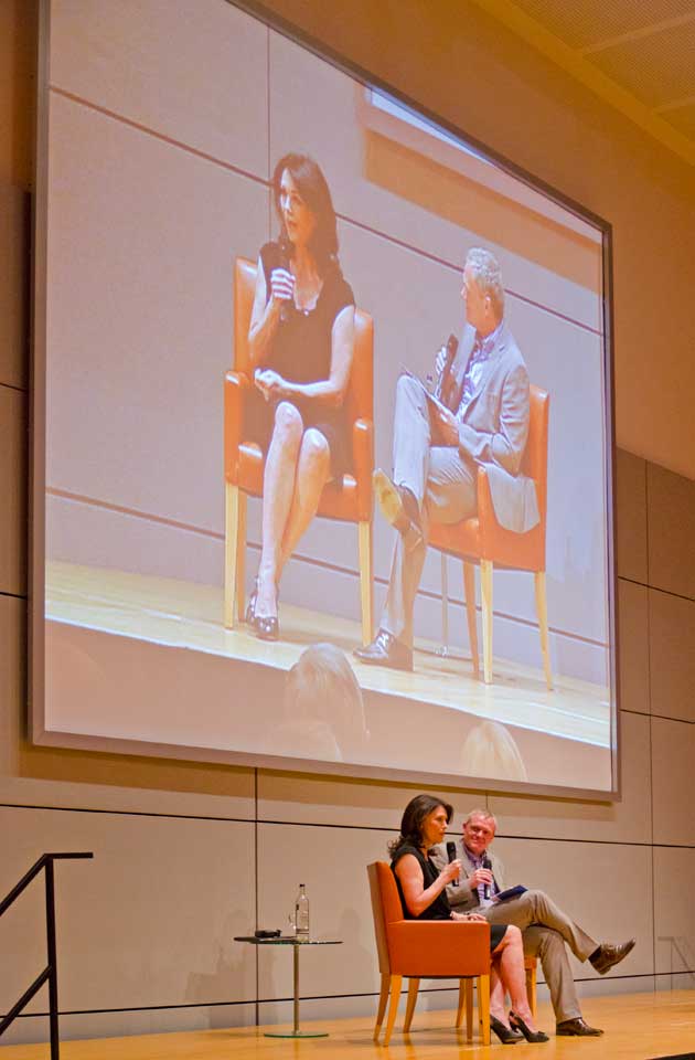 Überhaupt ist dieses Buch, wie Moderator Holger Laschka im anschließenden Bühnengespräch feststellte, kein Buch das jede Schauspielerin zur eigenen Darstellung unbedingt braucht. Es geht an keiner Stelle um die Person Iris Berben, es sind Geschichten wie die Story über die tibetische Nonne Phuntsok Nyidron, die fünfzehn Jahre in chinesischer Haft gesessen hat und sich heute für die Unabhängigkeit ihres Landes einsetzt. Oder die Geschichte der russischen Journalistin Anna Politkowskaja, die unter bis heute noch nicht geklärten Umständen ermordet wurde, weil sie die Wahrheit über den Tschetschenienkrieg schrieb.