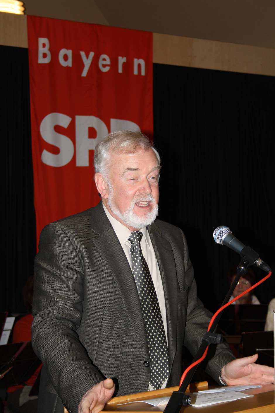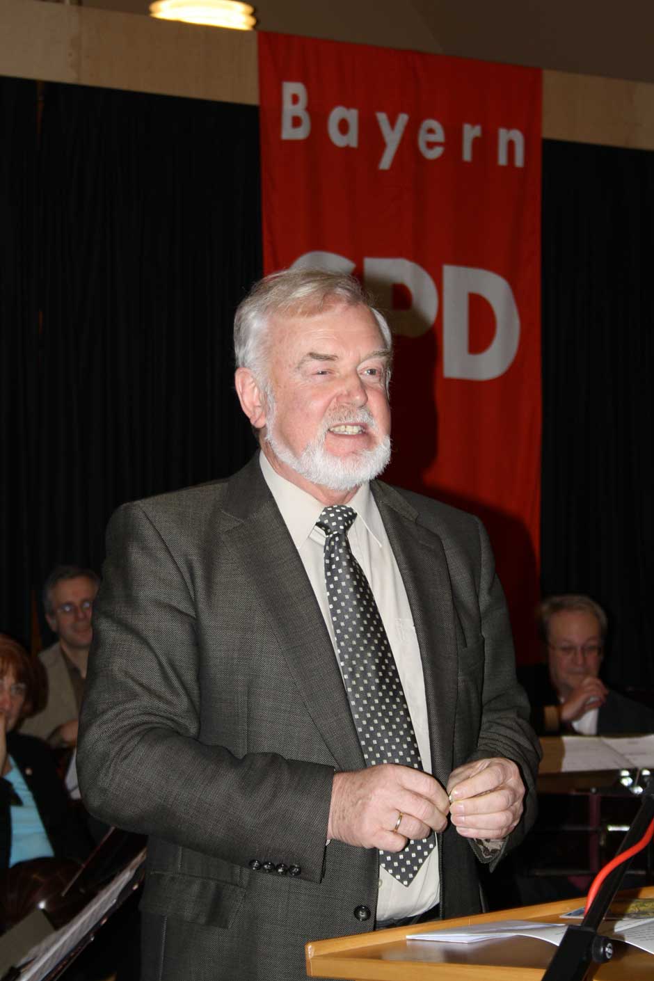 „Wir in den Gemeinden zappeln uns ab, um den Haushalt ausgleichen zu können“, und dort habe eine „größenwahnsinnige CSU“ vergessen, was eine Landesbank als oberstes Geldhaus der Sparkassen eigentlich für ein Ziel haben müsse. Er rief seine Genossen auf, Angriffen auf die Freiheit, das Sozialgefüge und die Bildungslandschaft zu widerstehen.