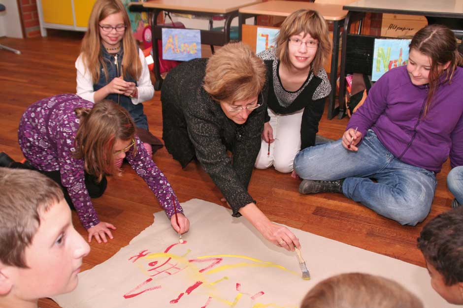 LTTA heißt „Leanring through the arts“, lernen durch die Künste. Dr. Petra Weingart hat diese kreative Art des Unterrichts in Unterfranken etabliert. Selbst Grundschullehrerin, merkte sie schnell, dass die künstlerische Umsetzung viele Lerninhalte nachhaltiger vermittelt. Und den Kindern das Lernen vor allem sehr viel mehr Spaß macht. Am Institut für Schulpädagogik der Universität Würzburg hat sie dann zu diesem Thema promoviert. Auf einem Kongress in Portugal lernte sie Angela Elster kennen, die in Kanada schon seit Jahren ein Programm mit allen Kunstformen für den Unterricht entwickelt hat. Jetzt war Weingart nicht mehr zu bremsen. Sechs Schulen mit 21 Klassen in den Städten und Landkreisen Würzburg und Schweinfurt gingen mit ihr an den Start. Angela Elster selbst kam mit ihren Mentorkünstlerinnen aus Kanada und hielt Lehrerfortbildungen, inzwischen ist die dreijährige Fortbildung für Lehrer und Künstler angelaufen.