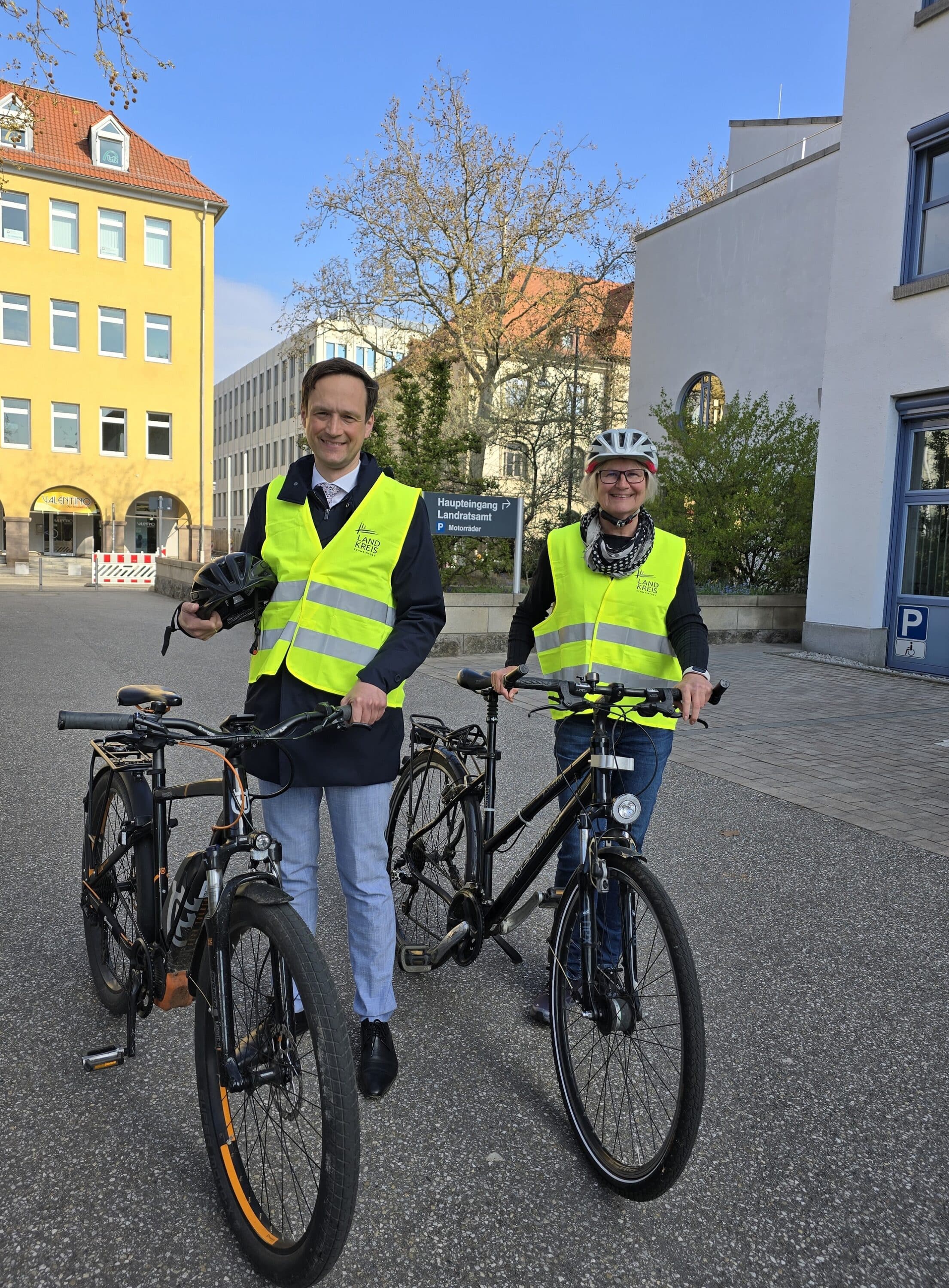 Bild: Setzen sich gemeinsam für die Verkehrssicherheit im Landkreis Schweinfurt ein: Landrat Florian Töpper und Radverkehrsbeauftragte Ursula Schmidt.