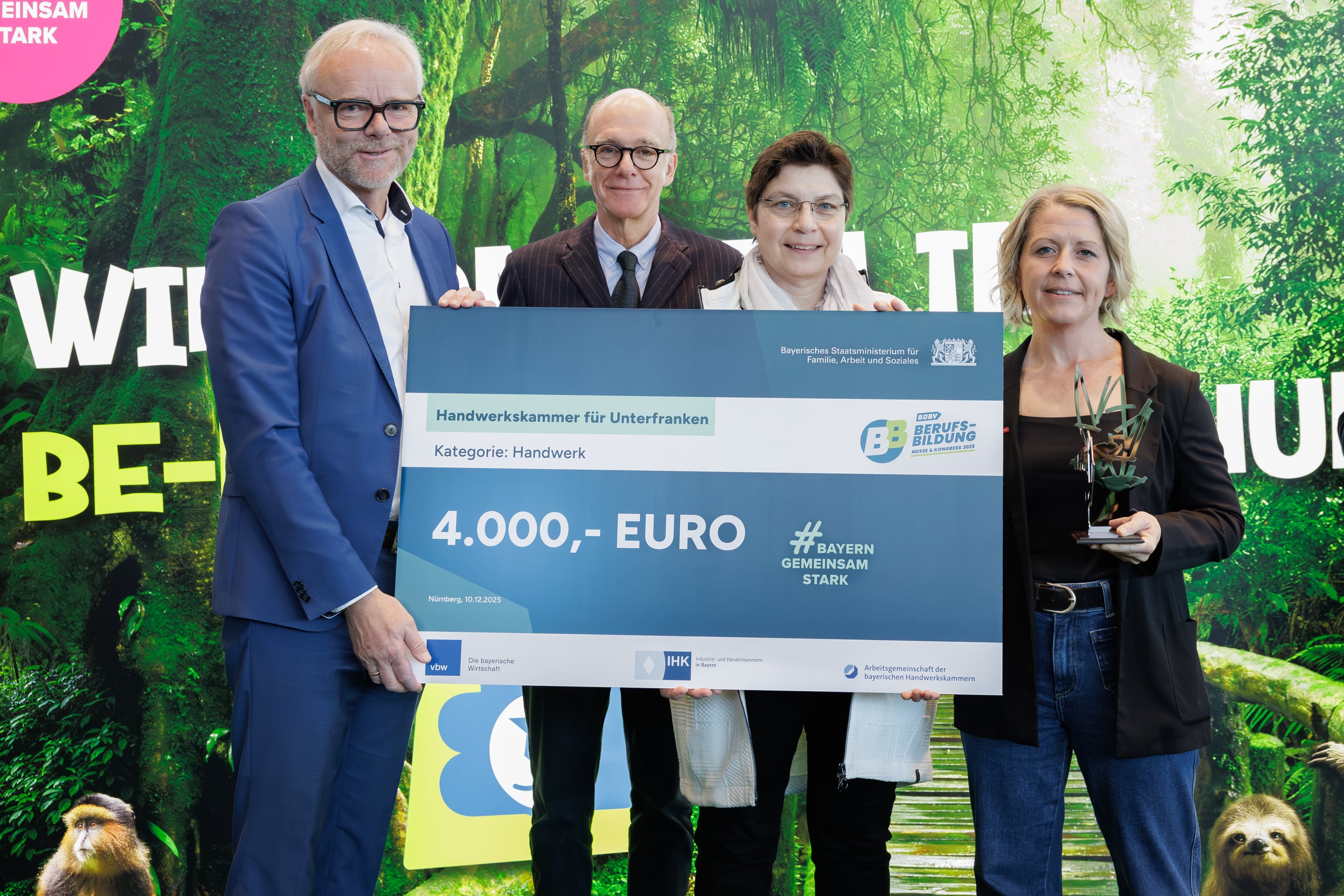 Der „Macher-Tag“ der Handwerkskammer für Unterfranken in Würzburg ist am Mittwoch, 10. Dezember 2025, in Nürnberg ausgezeichnet worden. Er erhielt den Preis als besonders gelungene Berufsorientierungsmaßnahme, den das Bayerische Sozialministerium, der Bayerische Handwerkstag, der Bayerische Industrie- und Handelskammertag und die vbw – Vereinigung der Bayerischen Wirtschaft e.V. zum dritten Mal ausgelobt hatten.