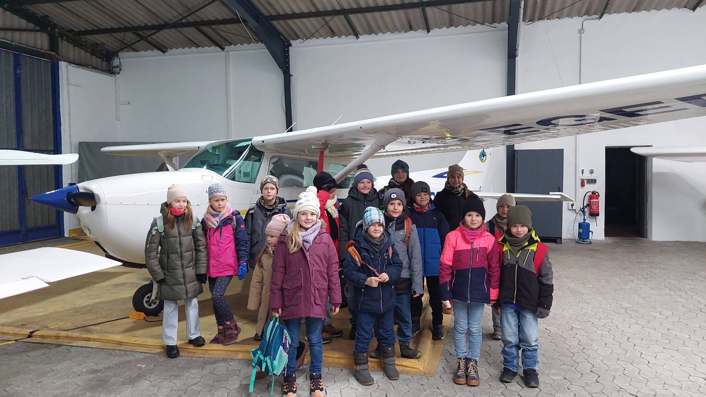 Der Besuch auf dem Verkehrslandeplatz Haßberge faszinierte die 17 Mädchen und Buben, die am Mitbringtag des Landreises teilnahmen.