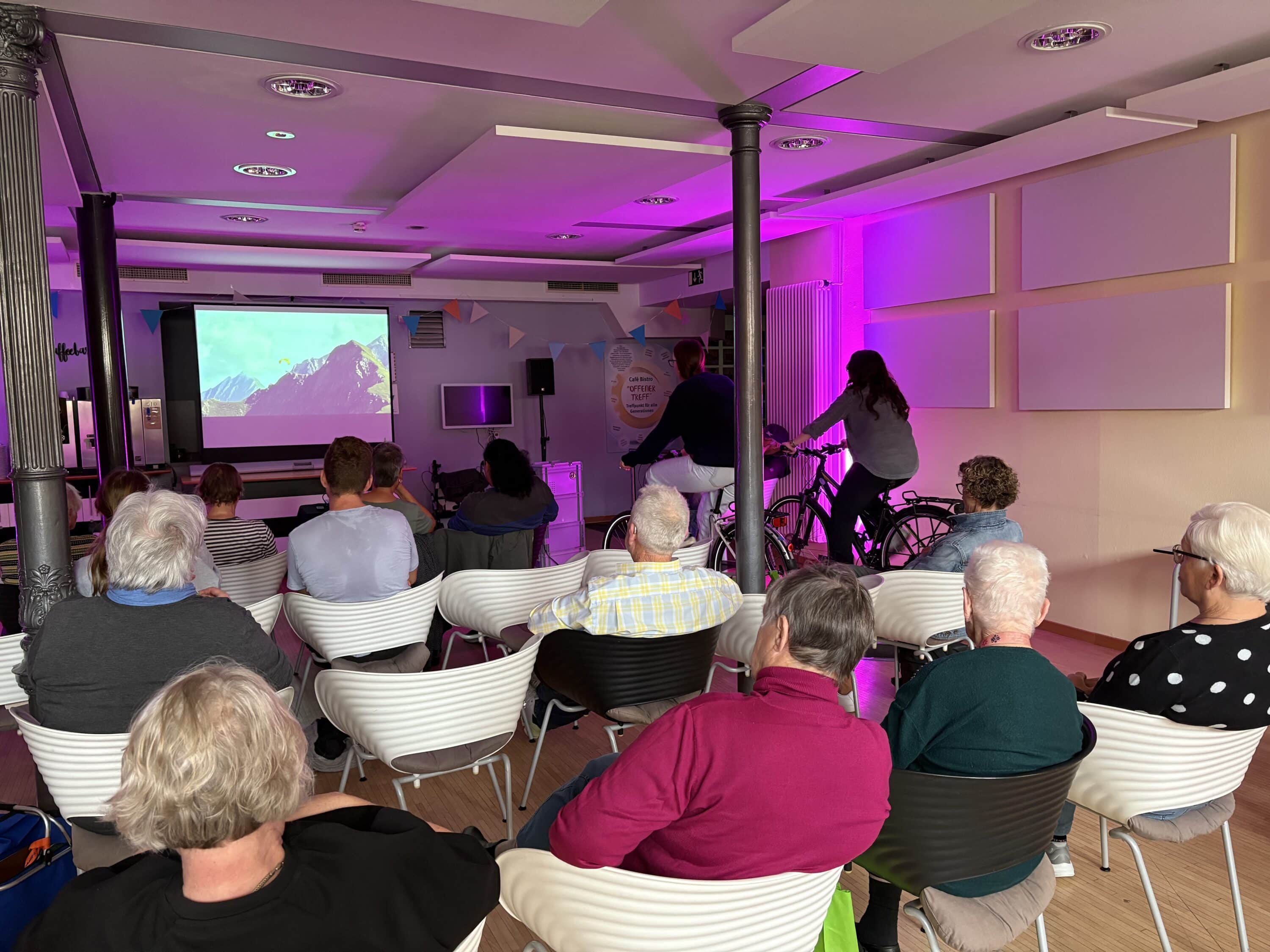 Sowohl im Mehrgenerationenhaus als auch in der Realschule fanden sich zahlreiche Freiwillige, die mit reiner Muskelkraft für die nötige Akkuladung sorgten. So konnte sichergestellt werden, dass auch während der Radler-Wechsel der Film weiterlief und das Kinoerlebnis nicht geschmälert wurde. Das Fahrradkino zeigte ganz praktisch, was es bedeutet, Strom und Energie zu produzieren. Die fleißigen Radfahrerinnen und Radfahrer lieferten durch ihren Einsatz nicht nur Ökostrom für das Filmerlebnis, sondern taten gleichzeitig etwas für ihre Gesundheit. Mit dem Fahrradkino wurde somit für Spaß und ausreichend Bewegung gesorgt und darüber hinaus aufgezeigt, dass es sich lohnt, sich für den Erhalt unseres Planeten in seiner Vielfalt einzusetzen.