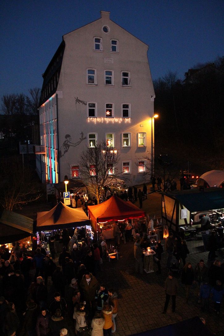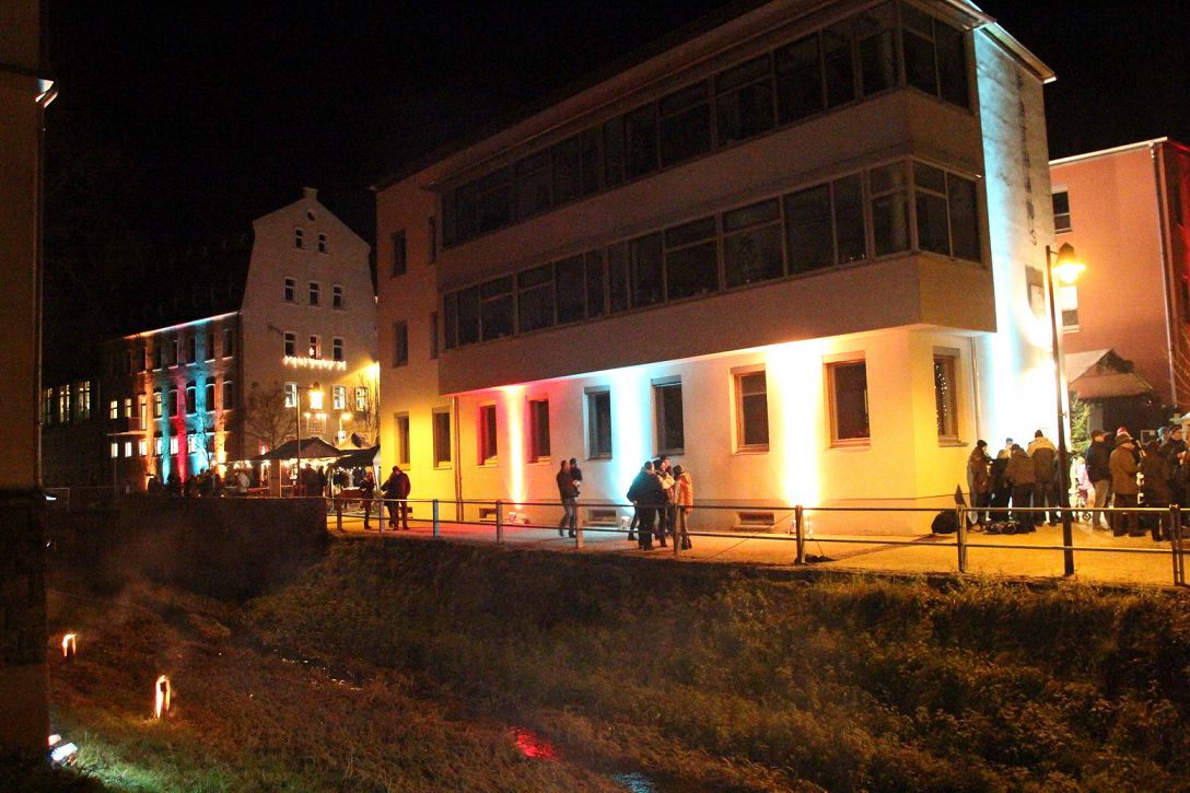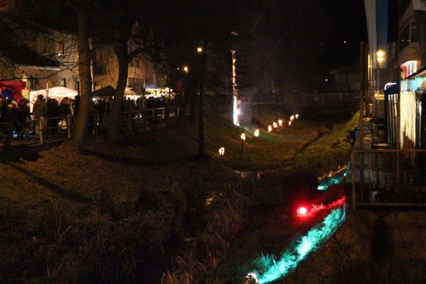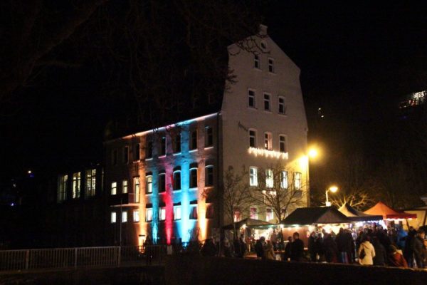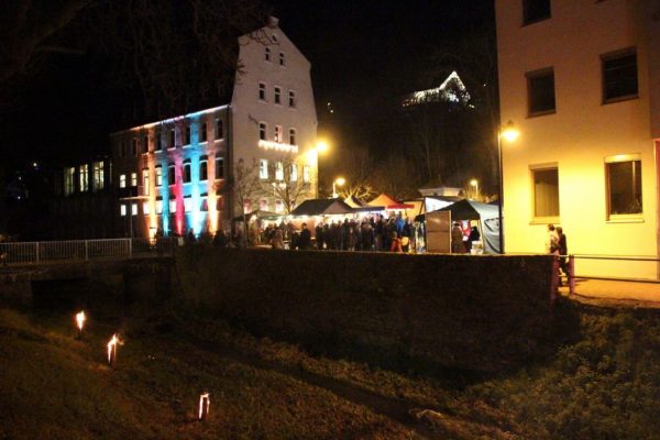 Ein besonderes Markenzeichen der Schonunger Weihnacht ist die einzigartige Lichtillumination, die in den Abendstunden eine besondere Atmosphäre ausstrahlt. Rathaus und historische Gebäude, Brücken und Mauern werden in besonderen Farben gehüllt. Die Schwedenfeuer und Fackeln am Bachlauf sorgen ebenfalls für eine stimmungsvolle und romantische Umgebung – die Besucher staunten schließlich nicht schlecht. Auch die Flüchtlingsfamilien aus der Gemeinde zeigten sich ganz angetan vom weihnachtlichen Zauber des Marktes.