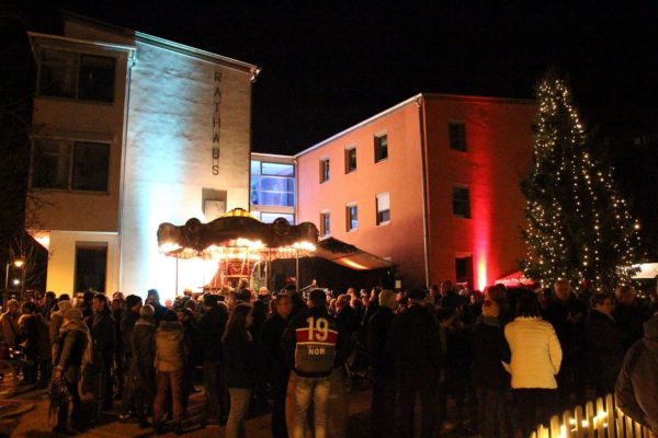 Zur Eröffnung der Schonunger Weihnacht erinnerte der Bürgermeister an die rasante Entwicklung der Großgemeinde: Es sei schließlich der erste Weihnachtsmarkt nach Sanierung der Altlast, Städtebaulicher Erneuerung und Inbetriebnahme des Bahnhofs. Durch mehr Parkplätzen, mehr Mobilität und einem schöneren Umfeld profitiert schließlich auch die Schonunger Weihnacht. Per Bus und Bahn geht es jetzt direkt vor die Tore des Weihnachtsmarktes und auch der Zentralparkplatz im Alban Park ist im Handumdrehen zu erreichen.