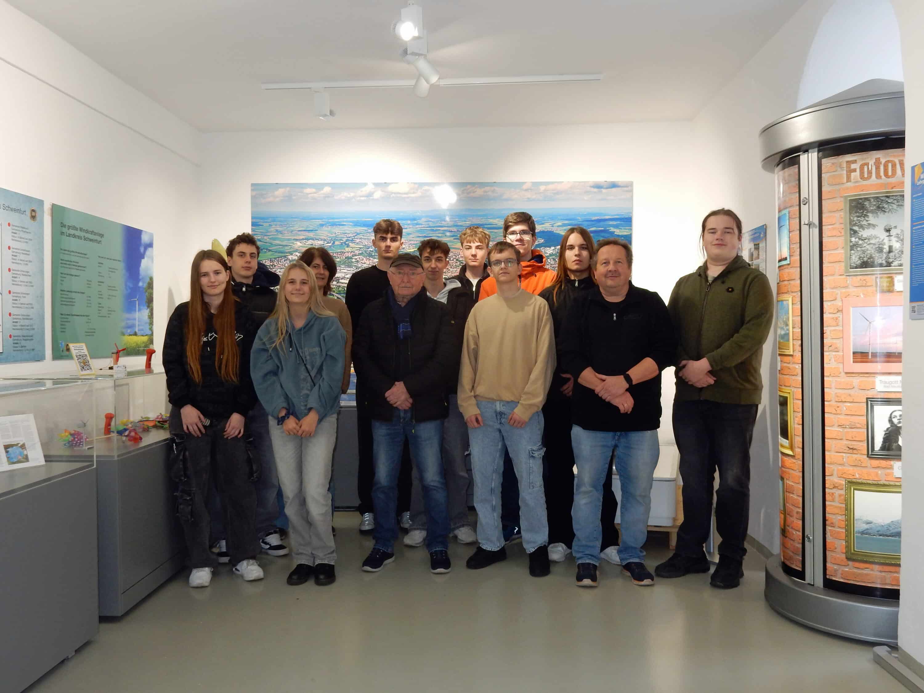Titelbild: Die Teilnehmerinnen und Teilnehmer des P-Seminars mit der Lehrkraft , dem Museumsleiter Wolfgang Rücknagel ( sechster von links ) und Dieter Bauer ( 2. Von rechts ) AKI Museumsführer