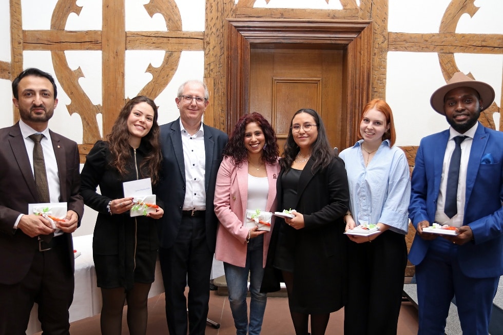 Schweinfurt: Freude mit einem Tropfen Wehmut: Zum letzten Mal in seiner Amtszeit hat der Schweinfurter Oberbürgermeister Sebastian Remelé die besten Absolventinnen und Absolventen des vergangenen Semesters an der Technischen Hochschule Würzburg-Schweinfurt (THWS) ausgezeichnet. Gemeinsam mit THWS-Präsident Prof. Dr. Jean Meyer gratulierte er ihnen in der historischen Diele des Schweinfurter Rathauses zu ihren hervorragenden Leistungen.