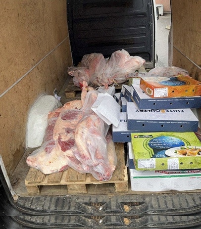 Am Freitag, gegen 11:20 Uhr, kontrollierten Beamte der Schweinfurter Polizei einen Kleintransporter in der Niederwerrner Straße. Der Fahrer, ein 35-jähriger Mann mit syrischer Staatsbürgerschaft, transportierte auf der Ladefläche mehrere Hundert Kilo an Fleischprodukten. Das für den Verkauf bestimmte Fleisch lag auf Holzpaletten, teils ohne Verpackung, auf der dreckigen und ungekühlten Ladefläche. Dem Mann wurde der Weiterverkauf des Fleisches untersagt und angeordnet, dass rund 220 Kilogramm des unsachgemäß verpackten und transportierten Fleisches ordentlich zu entsorgen sind.