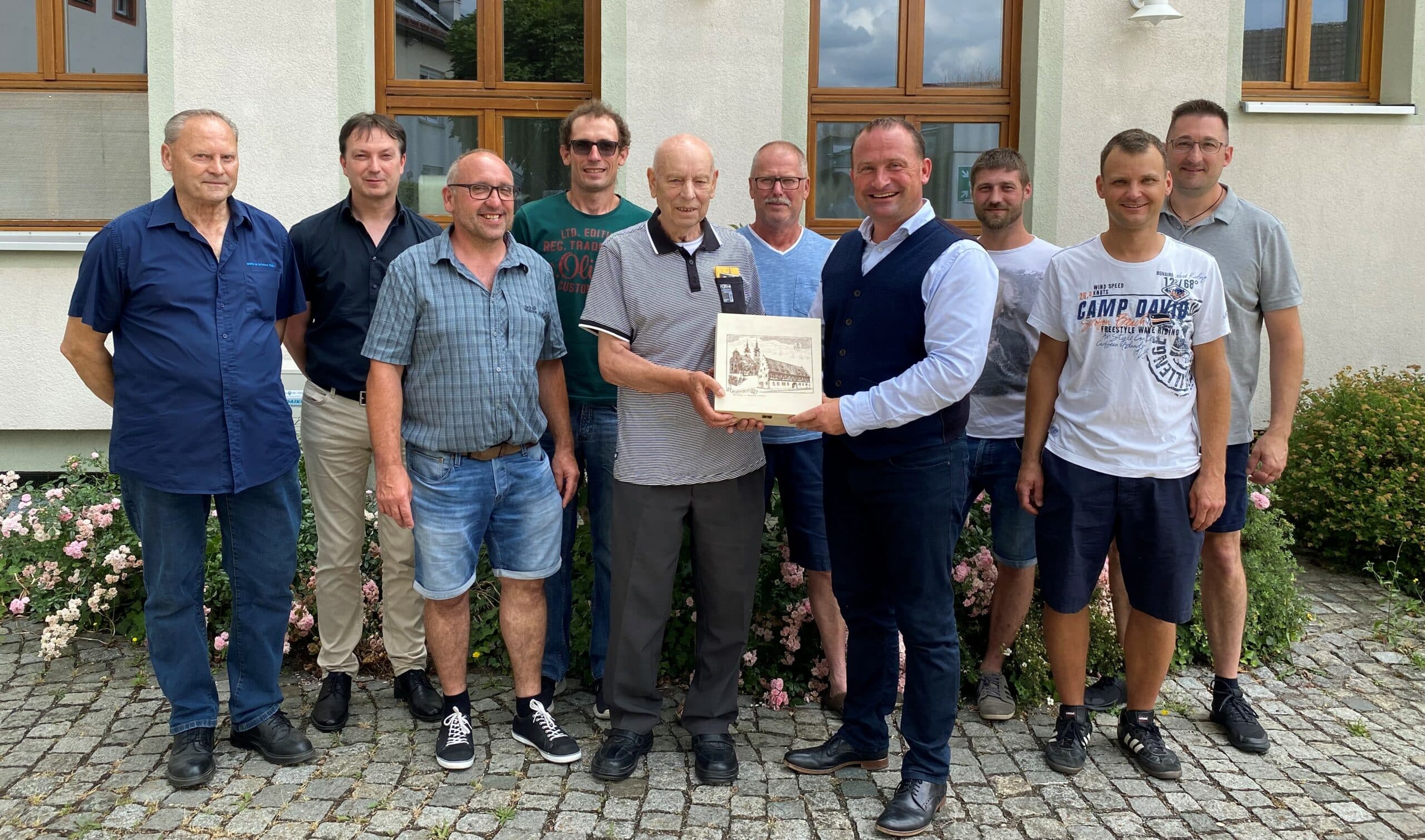 Viele seiner Kollegen vom gemeindlichen Bauhof und der Verwaltung waren zusammen mit Bürgermeister Christian Keller gekommen, um Rudi Brand gebührend zu verabschieden.
