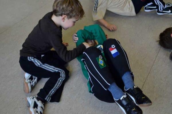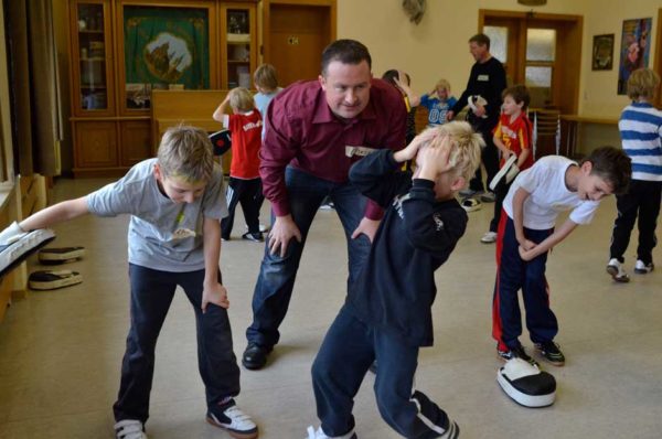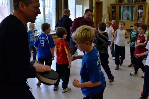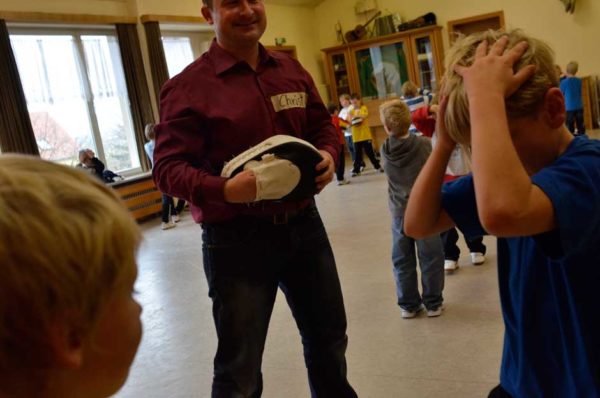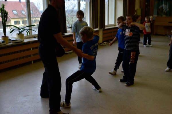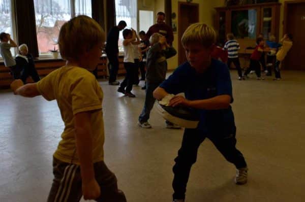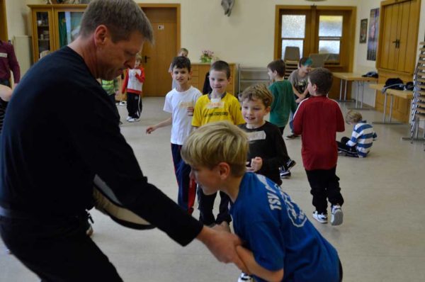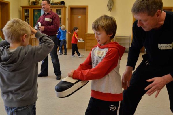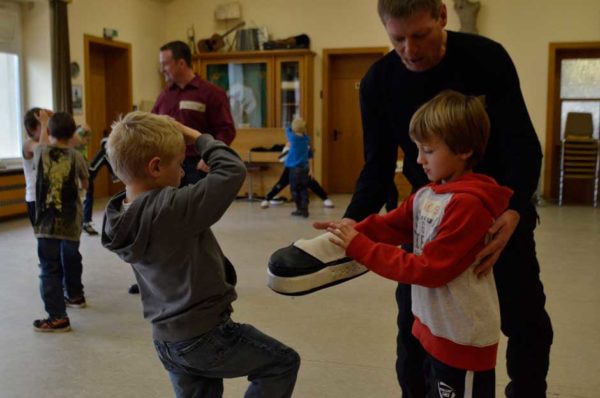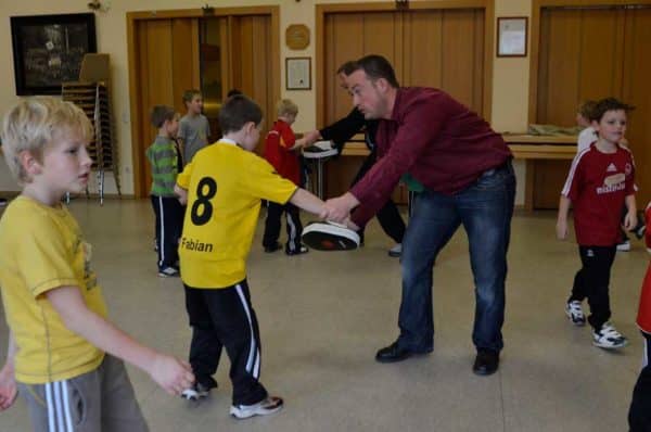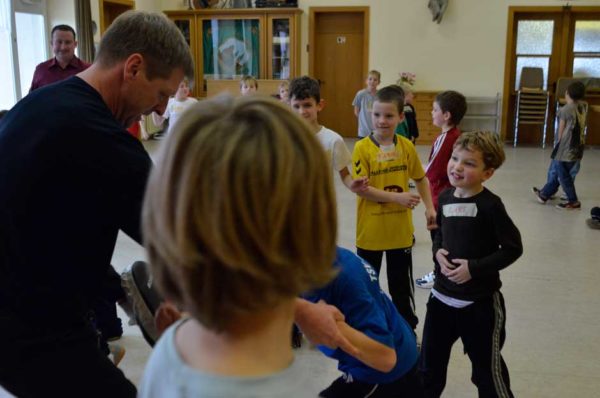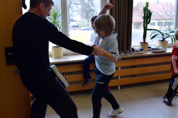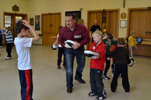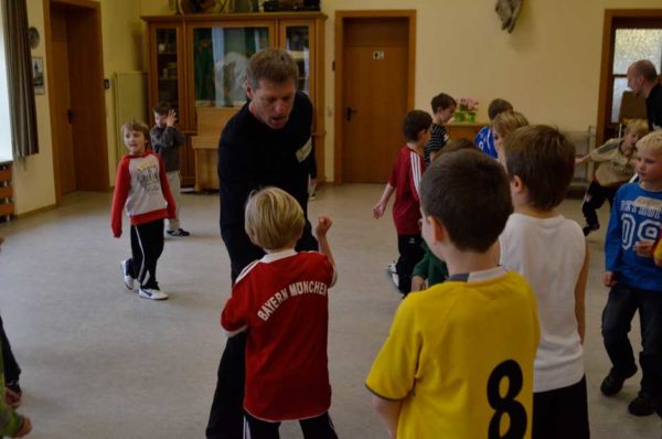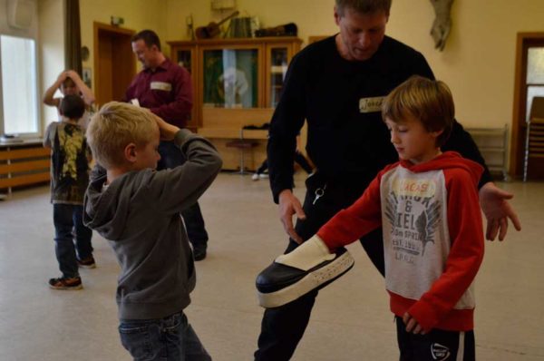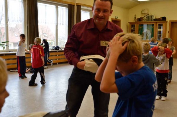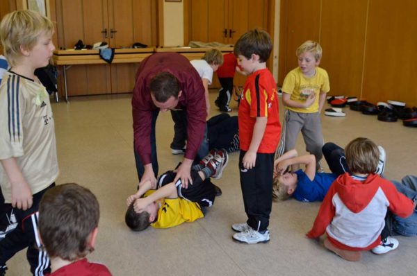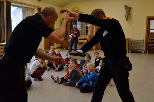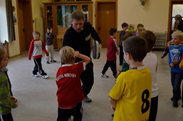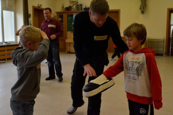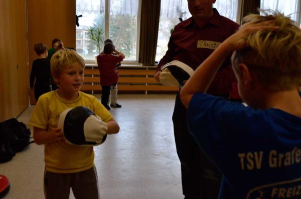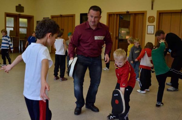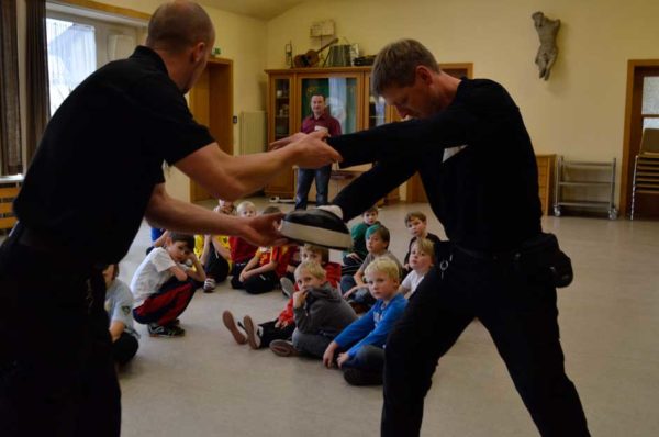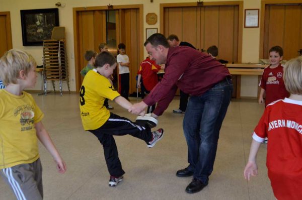 Am Samstag haben sich im kath. Pfarrheim in Grafenrheinfeld 25 Buben zwischen 6 und 8 Jahren eingefunden, um mit Christian und den beiden Polizei-Einsatztrainern, Joachim und Marco, Situationen, die für Kinder im Alltag gefährlich werden können, durch zu spielen. Da ging es hart zur Sache. Im theoretischen Teil wurde erst einmal geklärt, was ist eigentlich Gewalt und wie man Gewalt ohne feig zu sein aus dem Wege gehen kann.