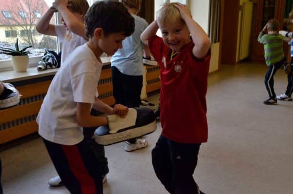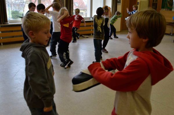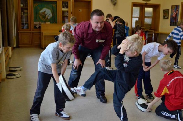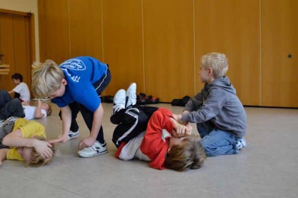 Ganz wichtig ist das Wort „Nein”. Kinder haben das Recht über sich selbst zu entscheiden und dürfen auch Erwachsenen gegenüber „Nein” sagen. Dass dabei die Entschiedenheit der Stimme und die Lautstärke eine entscheidende Rolle spielt, war den Kindern schnell klar. Richtig und laut genug schreien will geübt sein. So haben dann auch die Wände im Pfarrheim richtig gewackelt und die Stimmbänder der Kids gehörten neben Arm und Beinmuskeln zu den am meisten strapazierten Körperteilen.