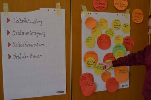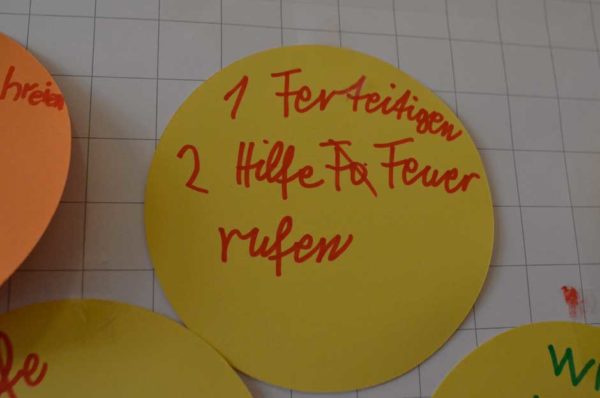 Übungen im Erkennen von so genannten Rettungsinseln, das sind Orte an denen viele Menschen sind und einem bedrängten Kind helfen können, waren ein wichtiger Bestandteil der Theorie. Das „Gefahrenradar” der Kinder zu schulen war ein Ziel des Kurses.