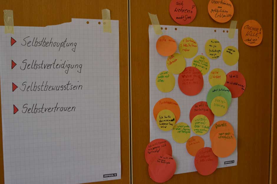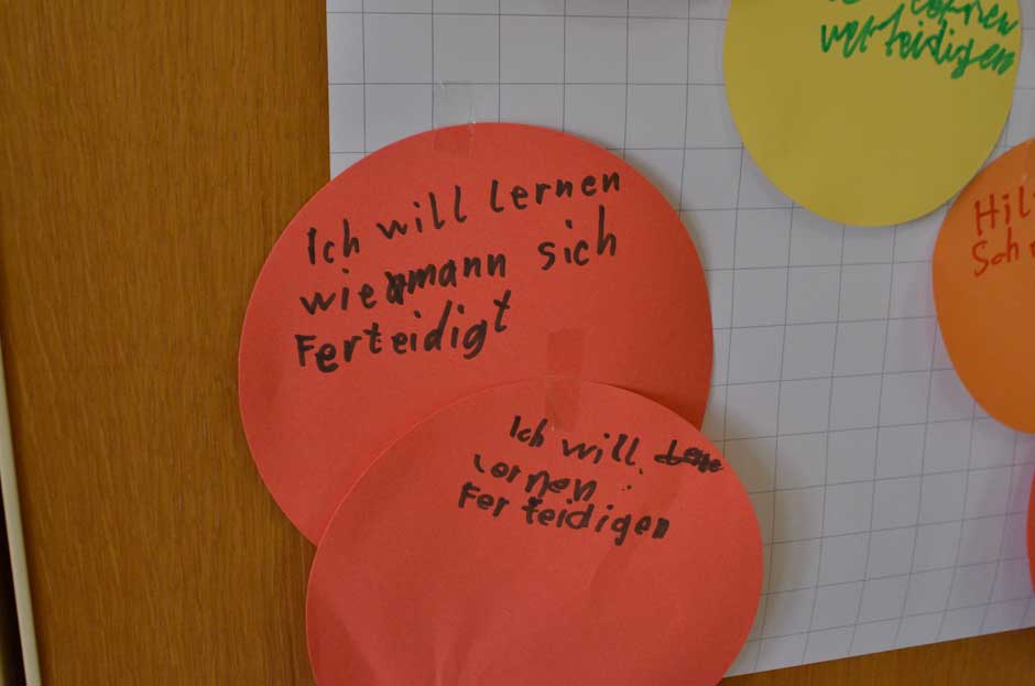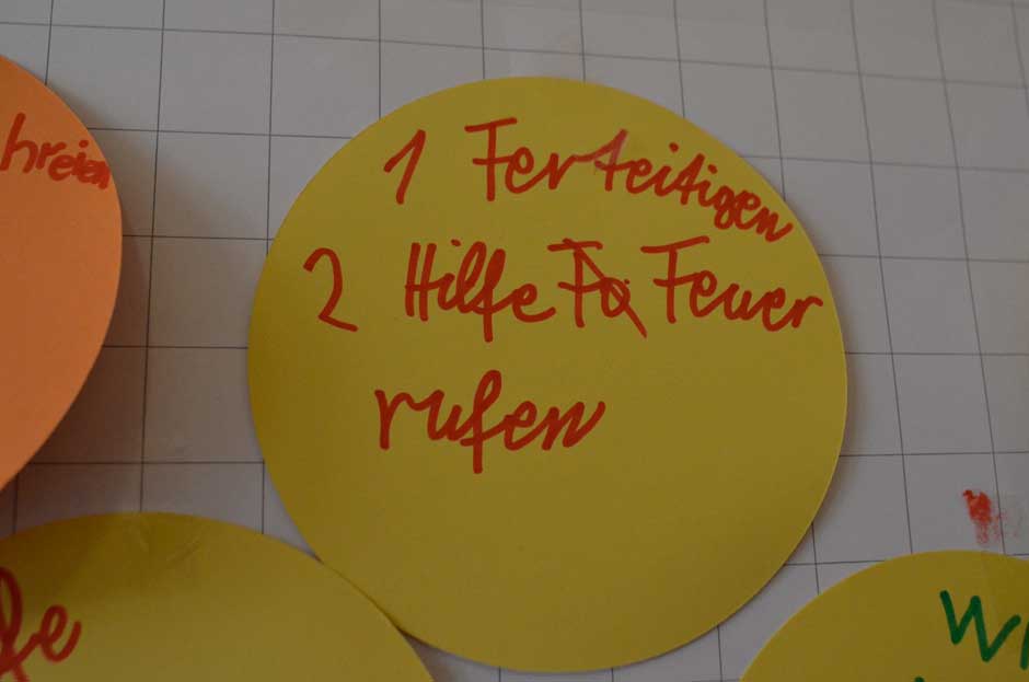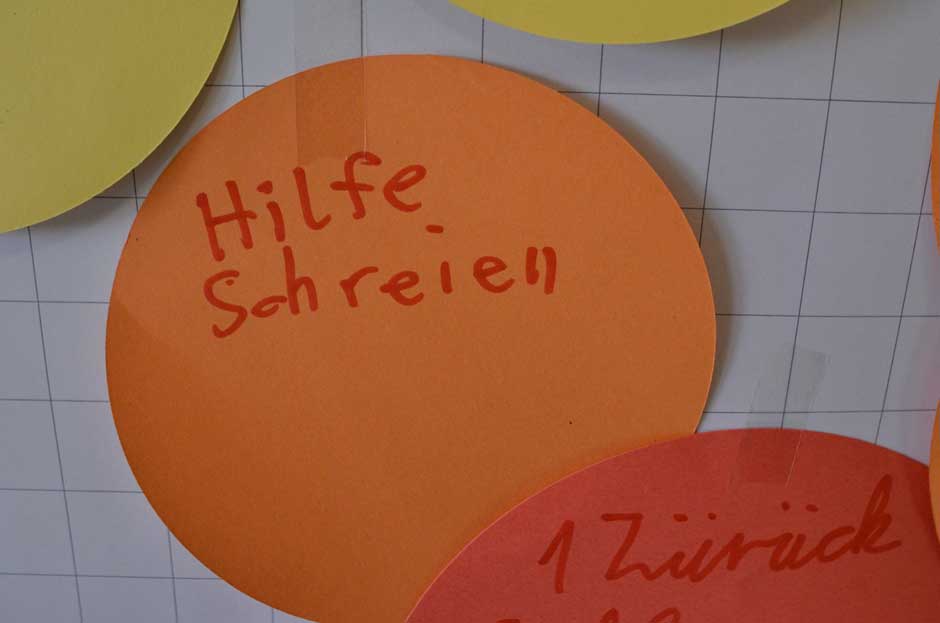 Übungen im Erkennen von so genannten Rettungsinseln, das sind Orte an denen viele Menschen sind und einem bedrängten Kind helfen können, waren ein wichtiger Bestandteil der Theorie. Das „Gefahrenradar” der Kinder zu schulen war ein Ziel des Kurses.