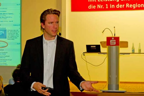 Schweinfurt: Das Veranstaltungszentrum der Sparkasse Schweinfurt war gestern Abend Schauplatz eines Vortrages, der hoffentlich vielen die Augen geöffnet hat. Geladen waren Gewerbekunden und Führungskräfte aus der Wirtschaft. Mit dem Referenten Prof. Dr. Klemens Skibicki, ist es der Sparkasse gelungen, einen ausgewiesenen Profi für das Thema „Social Media“ nach Schweinfurt zu holen. Noch nie hat einer Facebook, Twitter und Co. so genau und verständlich auf den Punkt gebracht. Noch nie hat sich jemand wie Skibicki wissenschaftlich so eingehend mit den Auswirkungen dieser neuen Medien auf die Gesellschaft auseinandergesetzt.