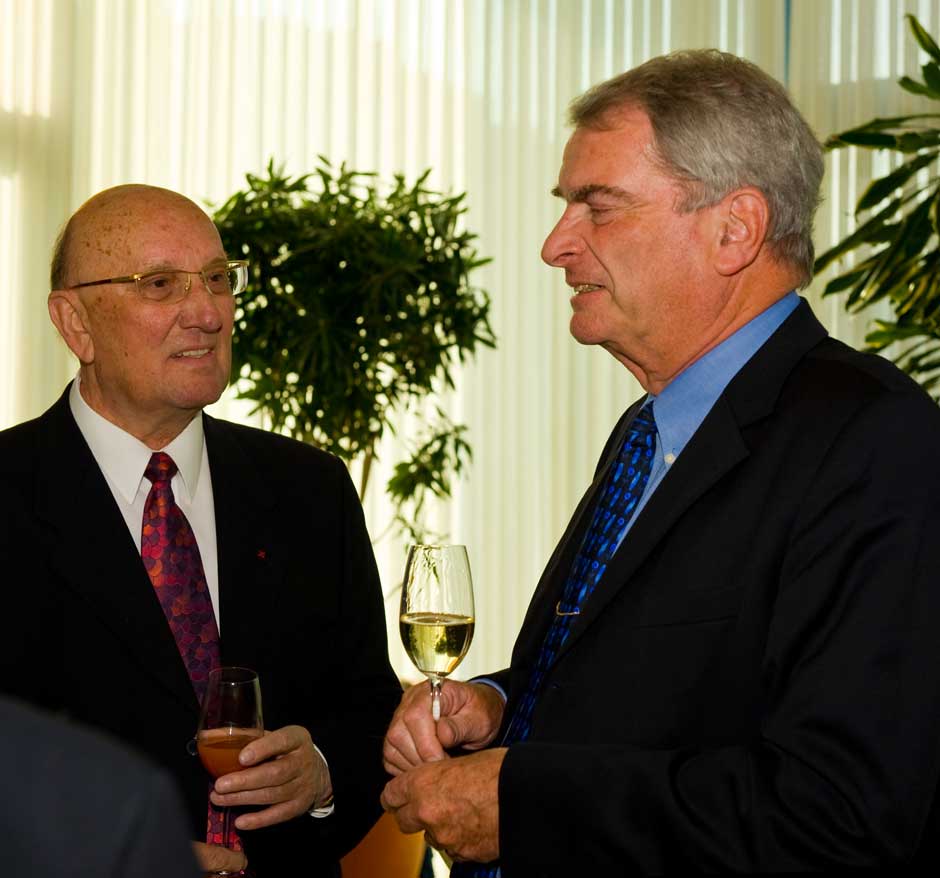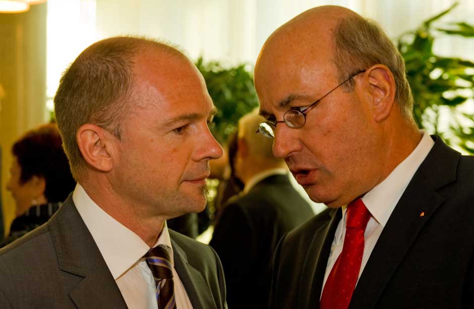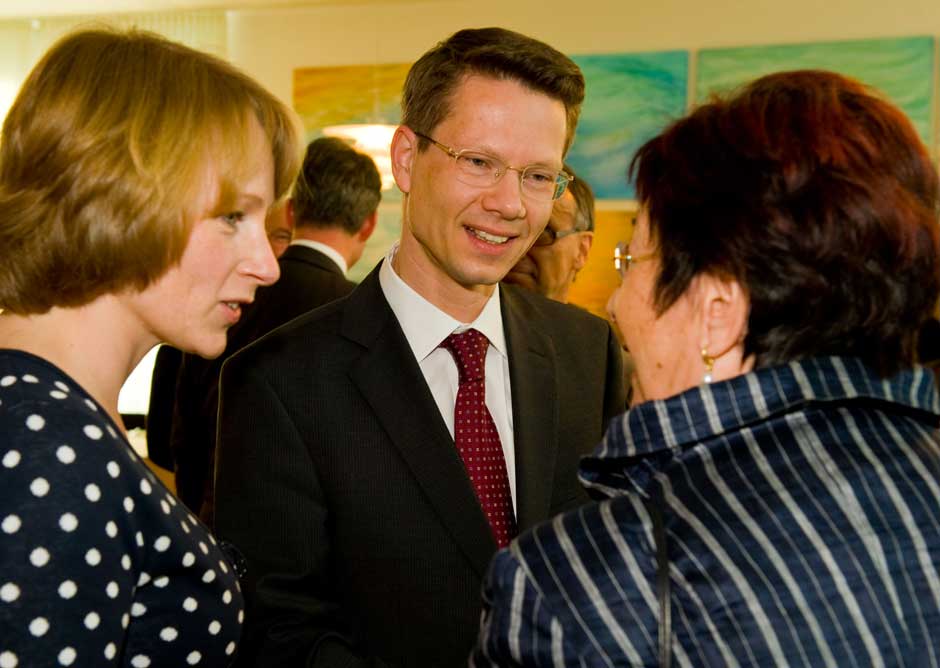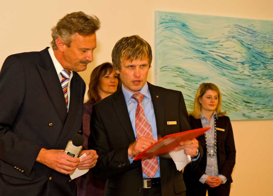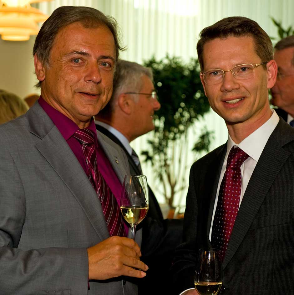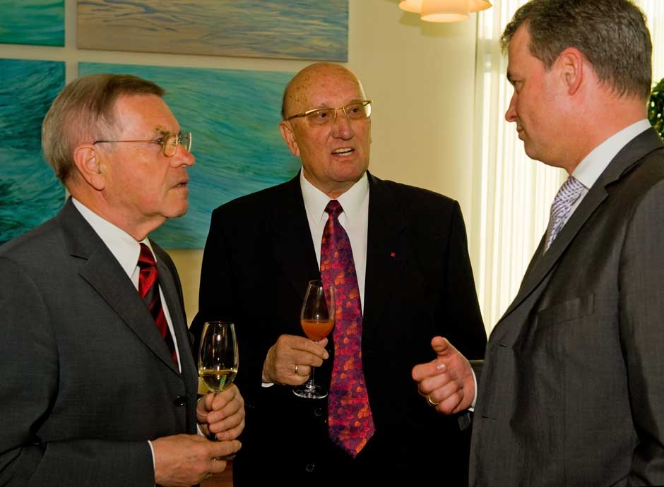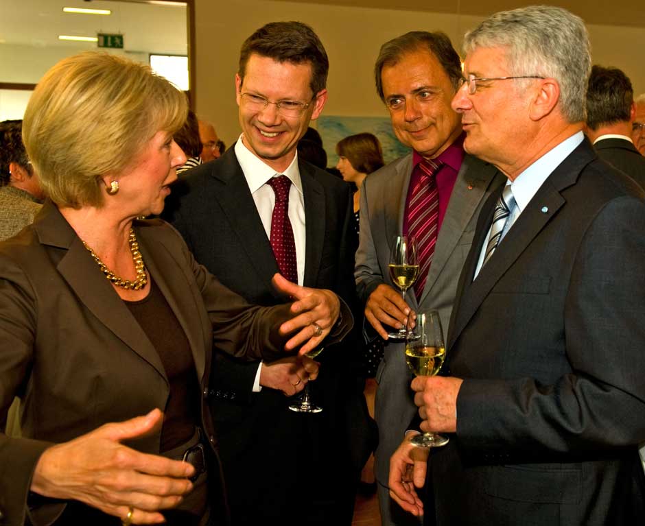 Schweinfurt: Oberbürgermeisterin Gudrun Grieser erhielt zusammen mit Landrat Harald Leitherer gestern Abend aus der Hand des neuen Präsidenten des bayerischen Sparkassenverbands, Theo Zellner, die Sparkassenmedaille in Gold.