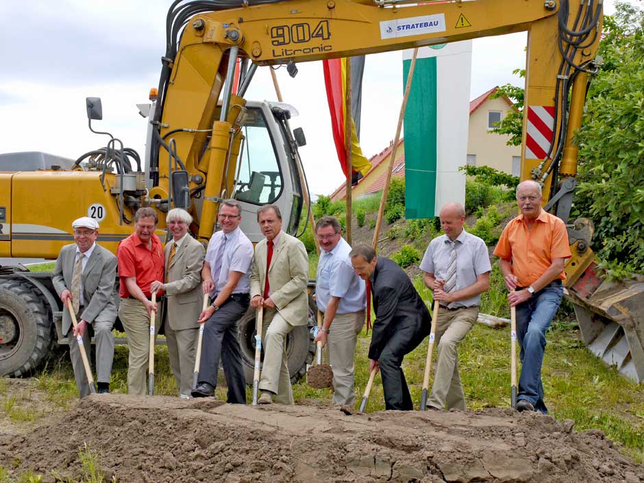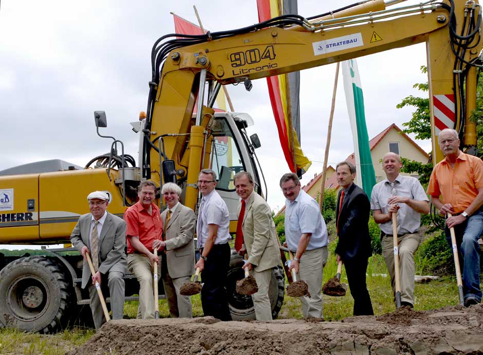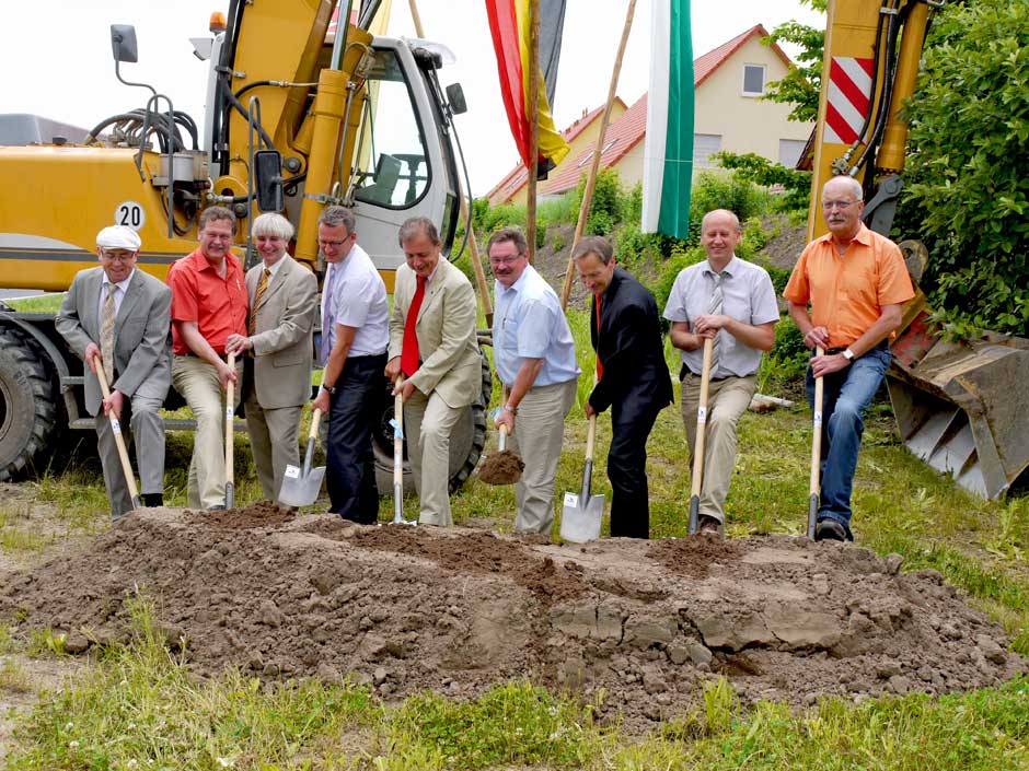 Pusselsheim: Am gleichen Tag für einen neuen Radweg den Spaten in die Hand zu nehmen und ein paar Minuten später mit dem Durchschneiden des blauen Bandes gleich eine neuen neuen Rad für die Radler frei zu geben, so etwas gibt es nur im Steigerwald.