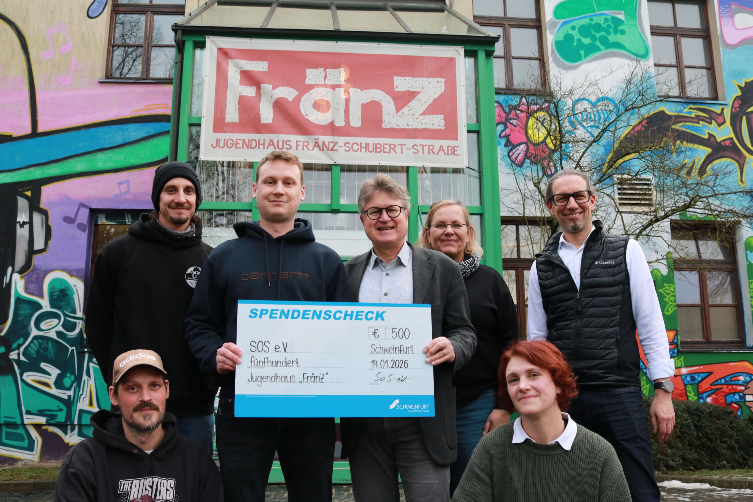 Schweinfurt – Mit großer Freude überreichte der S.O.S. e.V., vertreten durch Daniel Gößmann, Jonathan Rose und Johannes Gößmann, eine Spende in Höhe von 500 Euro an das Jugendhaus „FränZ“.